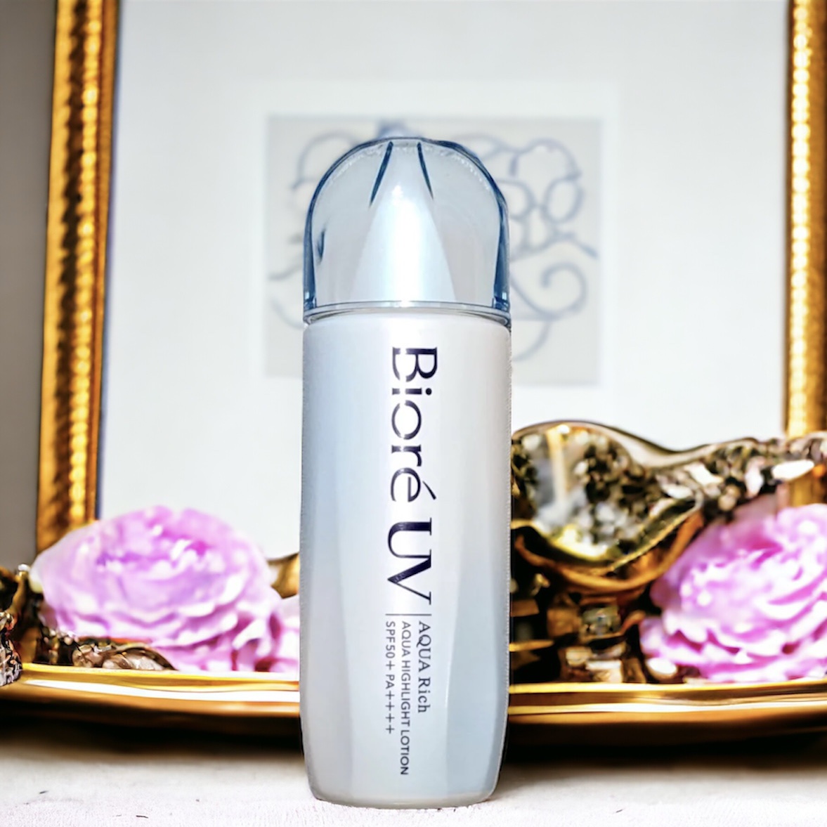 .ビオレUVアクアリッチアクアハイライトローション🌸#水層ハイライトuv身体用に購入🙌シャバシャバ系の日焼け止め。ジェルタイプに慣れてた私としてはやや使いづらい笑でも微粒のパールがすごくて、ほんとにキラキラつや感がアップ。頰、鼻筋やひたいに使...
