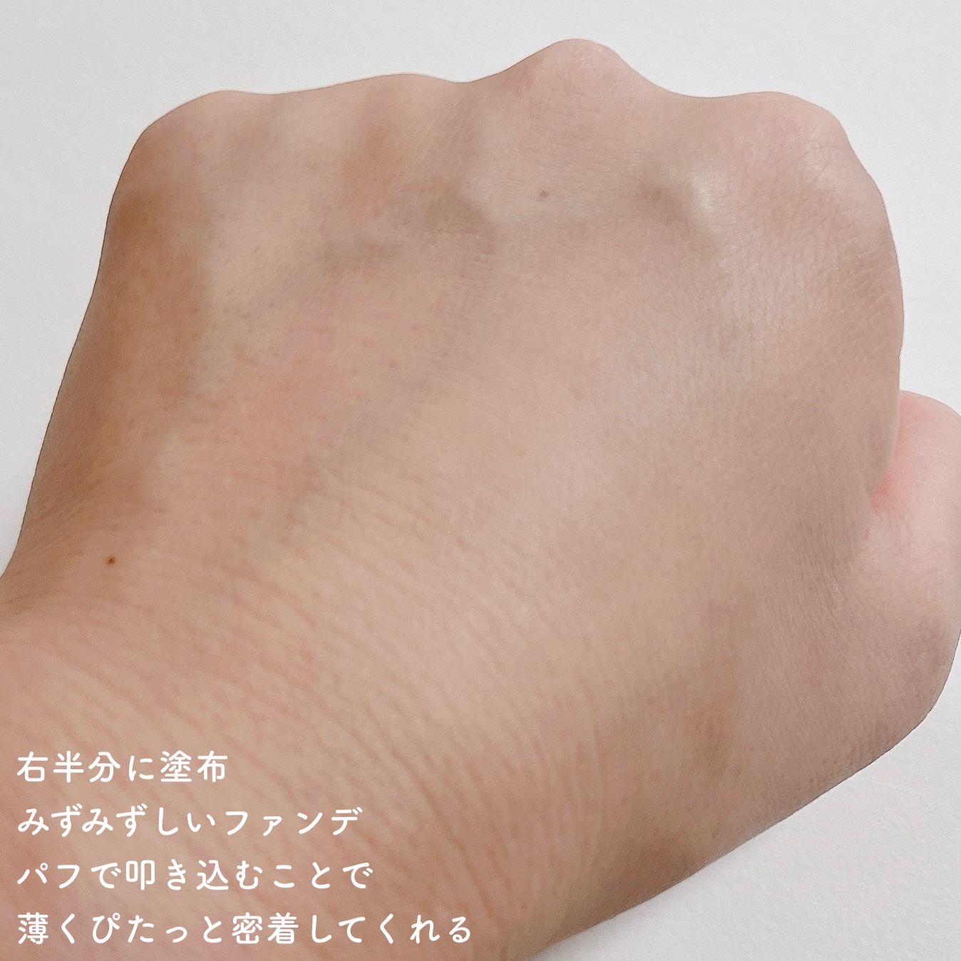 - テクスチャーは、肌が呼吸をするように、軽くて快適な、スキンブリージングテクスチャーです。 スキンケア成分を70%も使っているので、オイル感のあるツヤではなく、しっとりとして潤いが感じられる水分GLOWです。 光の屈折を利用して肌が輝きます。 パフでたたきこむことで、ぴたっと肌に密着し、毛穴もしっかりカバーしてくれます。