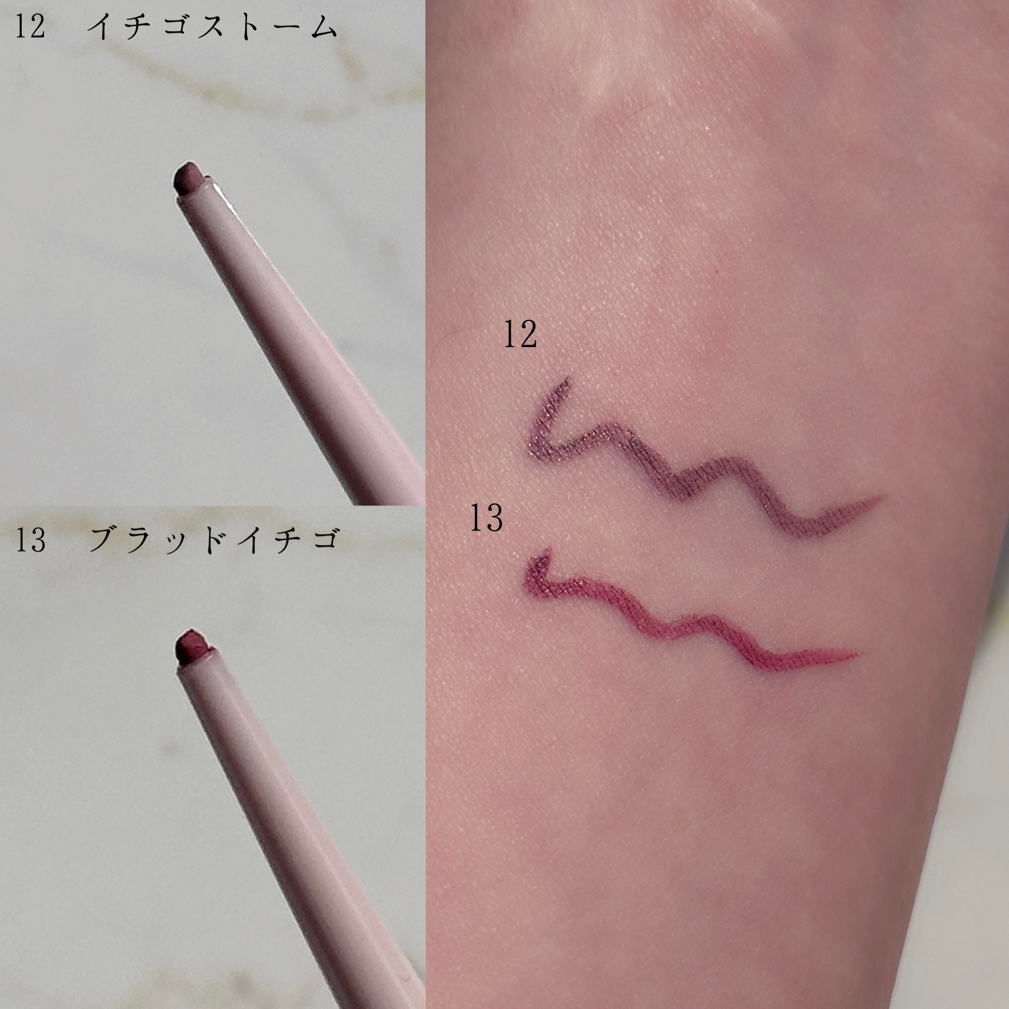- <01 ディープブラック> メチルトリメチコン、トリメチルシロキシケイ酸、(アクリレーツ/アクリル酸ステアリル/メタクリル酸ジメチコン)コポリマー、ポリエチレン、カルナウバロウ、キャンデリラロウ、ジメチコン、水添レシチン、シリカ、メタクリル酸メチルクロスポリマー、トコフェロール、スクワラン、ホホバ種子油、マカデミア種子油、ヒアルロン酸Na、メチコン、(+/-)水酸化Al、酸化鉄、マイカ、酸化チタン <02 ミディアムブラウン> メチルトリメチコン、トリメチルシロキシケイ酸、(アクリレーツ/アクリル酸ステアリル/メタクリル酸ジメチコン)コポリマー、ポリエチレン、カルナウバロウ、キャンデリラロウ、ジメチコン、水添レシチン、シリカ、メタクリル酸メチルクロスポリマー、トコフェロール、スクワラン、ホホバ種子油、マカデミア種子油、ヒアルロン酸Na、メチコン、(+/-)水酸化Al、酸化鉄、マイカ、酸化チタン <03 ダークブラウン> メチルトリメチコン、トリメチルシロキシケイ酸、(アクリレーツ/アクリル酸ステアリル/メタクリル酸ジメチコン)コポリマー、ポリエチレン、カルナウバロウ、スクワラン、ジメチコン、水添レシチン、シリカ、トコフェロール、メタクリル酸メチルクロスポリマー、キャンデリラロウ、ホホバ種子油、マカデミア種子油、ヒアルロン酸Na、メチコン、水酸化Al、酸化鉄、酸化チタン、マイカ <04 ガーネットバーガンディ> メチルトリメチコン、トリメチルシロキシケイ酸、(アクリレーツ/アクリル酸ステアリル/メタクリル酸ジメチコン)コポリマー、ポリエチレン、カルナウバロウ、ジメチコン、キャンデリラロウ、水添レシチン、シリカ、トコフェロール、メタクリル酸メチルクロスポリマー、スクワラン、ホホバ種子油、マカデミア種子油、ヒアルロン酸Na、メチコン、水酸化Al、酸化鉄、グンジョウ、酸化チタン、マイカ <06 フォギープラム> メチルトリメチコン、トリメチルシロキシケイ酸、(アクリレーツ/アクリル酸ステアリル/メタクリル酸ジメチコン)コポリマー、ポリエチレン、カルナウバロウ、ジメチコン、キャンデリラロウ、水酸化Al、水添レシチン、シリカ、トコフェロール、メタクリル酸メチルクロスポリマー、スクワラン、ホホバ種子油、マカデミア種子油、ヒアルロン酸Na、メチコン、酸化鉄、グンジョウ、酸化チタン、マイカ <07 アズキブラウン> メチルトリメチコン、トリメチルシロキシケイ酸、(アクリレーツ/アクリル酸ステアリル/メタクリル酸ジメチコン)コポリマー、ポリエチレン、カルナウバロウ、キャンデリラロウ、ジメチコン、水添レシチン、シリカ、トコフェロール、メタクリル酸メチルクロスポリマー、スクワラン、ホホバ種子油、マカデミア種子油、水酸化Al、ハイドロゲンジメチコン、ヒアルロン酸Na、メチコン、酸化鉄、グンジョウ、マイカ、酸化チタン <09 ダージリンピンク> メチルトリメチコン、トリメチルシロキシケイ酸、(アクリレーツ/アクリル酸ステアリル/メタクリル酸ジメチコン)コポリマー、合成ワックス、カルナウバロウ、キャンデリラロウ、ジメチコン、水酸化Al、ハイドロゲンジメチコン、水添レシチン、シリカ、トコフェロール、メタクリル酸メチルクロスポリマー、スクワラン、ホホバ種子油、マカデミア種子油、ヒアルロン酸Na、メチコン、酸化鉄、酸化チタン、マイカ、グンジョウ <11 クラウディーグレー> メチルトリメチコン、トリメチルシロキシケイ酸、(アクリレーツ/アクリル酸ステアリル/メタクリル酸ジメチコン)コポリマー、合成ワックス、カルナウバロウ、ジメチコン、キャンデリラロウ、水酸化Al、水添レシチン、シリカ、トコフェロール、メタクリル酸メチルクロスポリマー、ハイドロゲンジメチコン、スクワラン、ホホバ種子油、マカデミア種子油、ヒアルロン酸Na、メチコン、酸化鉄、酸化チタン、マイカ <15 カプチーノピンク> メチルトリメチコン、トリメチルシロキシケイ酸、(アクリレーツ/アクリル酸ステアリル/メタクリル酸ジメチコン)コポリマー、合成ワックス、カルナウバロウ、ジメチコン、キャンデリラロウ、水酸化Al、水添レシチン、シリカ、トコフェロール、メタクリル酸メチルクロスポリマー、スクワラン、ホホバ種子油、マカデミア種子油、ヒアルロン酸Na、メチコン、酸化チタン、酸化鉄、マイカ <05 ビターキャラメル> メチルトリメチコン、トリメチルシロキシケイ酸、(アクリレーツ/アクリル酸ステアリル/メタクリル酸ジメチコン)コポリマー、ポリエチレン、カルナウバロウ、ジメチコン、キャンデリラロウ、水添レシチン、シリカ、トコフェロール、メタクリル酸メチルクロスポリマー、スクワラン、ホホバ種子油、マカデミア種子油、ヒアルロン酸Na、メチコン、水酸化Al、酸化鉄、マイカ、酸化チタン <08 マッチャカーキ> メチルトリメチコン、トリメチルシロキシケイ酸、(アクリレーツ/アクリル酸ステアリル/メタクリル酸ジメチコン)コポリマー、合成ワックス、