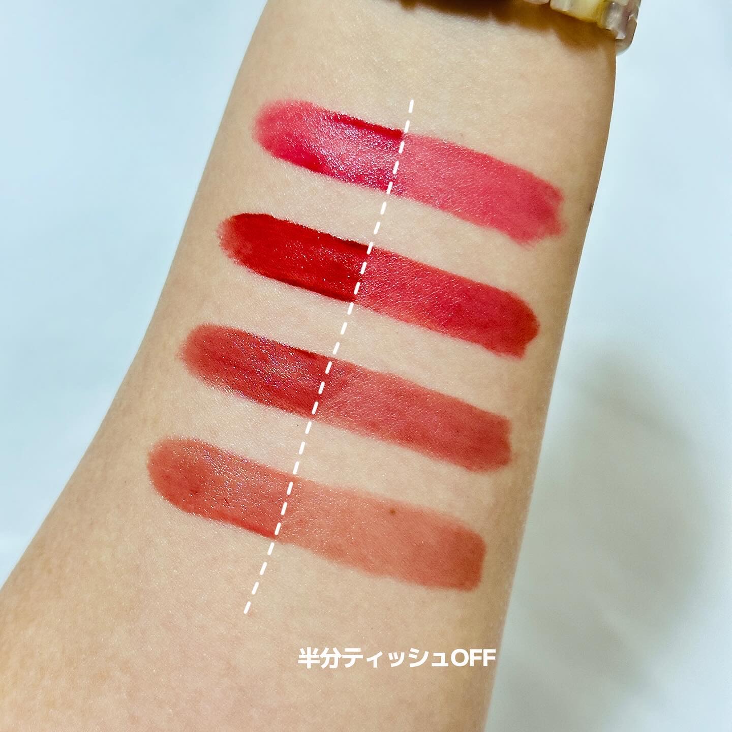 話題になっている通り、とにかく色持ちが良かった🫰🏻逆に落としにくいくらい、色が唇に定着する...🫧色素沈着には少し注意した方が良さそうなくらい...💭 単体で使っても可愛いし、上からグロスを重ねても可愛い😍 色持ちの良いティントをお探しの方、色々なカラーを楽しみたい方におすすめ☺︎