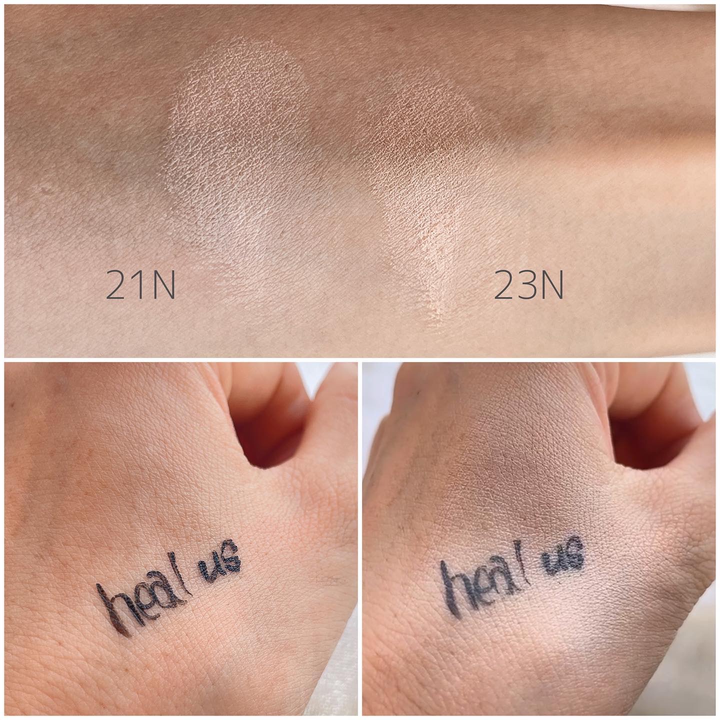 - <21号> 精製水、アジピン酸ジブチル、酸化チタン、プロパンジオール、サリチル酸エチルヘキシル、ホモサレート、エチルヘキシルトリアゾン、変性アルコール、サリチル酸ブチルオクチル、ナイアシンアミド、ジエチルアミノヒドロキシベンゾイル安息香酸ヘキシル、(カプリル/カプリン酸)ヤシアルキル、1,2-ヘキサンジオール、トリ(カプリル酸/カプリン酸)グリセリル、パンテノール、カミメボウキ葉エキス、ノウゼンハレン花/葉/茎エキス、ポリヒドロキシステアリン酸、ペンチレングリコール、イソノナン酸イソノニル、(ジグリコール/CHDM/イソフタル酸/SIP)コポリマー、シリカ、BG、ベヘニルアルコール、(アクリロイルジメチルタウリンアンモニウム/VP)コポリマー、(PEG-240/デシルテトラデセス-20/HDI)コポリマー、トリエトキシカプリリルシラン、水酸化Al、(アクリル酸Na/アクリロイルジメチルタウリン)コポリマー、ポリアクリレートクロスポリマー-6、ステアロキシヒドロキシプロピルメチルセルロース、ポリイソブテン、ステアロイルグルタミン酸Na、エチルヘキシルグリセリン、アルミナ、ステアリン酸、アデノシン、オレイン酸ソルビタン、(カプリリル/カプリル)グルコシド、セラミドNP、ポリグリセリル-3ポリジメチルシロキシエチルジメチコン、(サフラワー油/パーム油)アミノプロパンジオールエステルズ、コレステロール、トコフェロール、ラウリン酸K、ダイズステロール、リノール酸、リン脂質、カプリリルグリコール、酸化鉄 <23号> 精製水、アジピン酸ジブチル、酸化チタン、プロパンジオール、サリチル酸エチルヘキシル、ホモサレート、エチルヘキシルトリアゾン、変性アルコール、サリチル酸ブチルオクチル、ナイアシンアミド、ジエチルアミノヒドロキシベンゾイル安息香酸ヘキシル、(カプリル/カプリン酸)ヤシアルキル、1,2-ヘキサンジオール、トリ(カプリル酸/カプリン酸)グリセリル、パンテノール、カミメボウキ葉エキス、ノウゼンハレン花/葉/茎エキス、ポリヒドロキシステアリン酸、ペンチレングリコール、イソノナン酸イソノニル、ポリエステル-5、シリカ、BG、ベヘニルアルコール、(アクリロイルジメチルタウリンアンモニウム/VP)コポリマー、(PEG-240/デシルテトラデセス-20/HDI)コポリマー、トリエトキシカプリリルシラン、水酸化Al、(アクリル酸Na/アクリロイルジメチルタウリン)コポリマー、ポリアクリレートクロスポリマー-6、ステアロキシヒドロキシプロピルメチルセルロース、ポリイソブテン、ステアロイルグルタミン酸Na、エチルヘキシルグリセリン、アルミナ、ステアリン酸、アデノシン、オレイン酸ソルビタン、(カプリリル/カプリル)グルコシド、セラミドNP