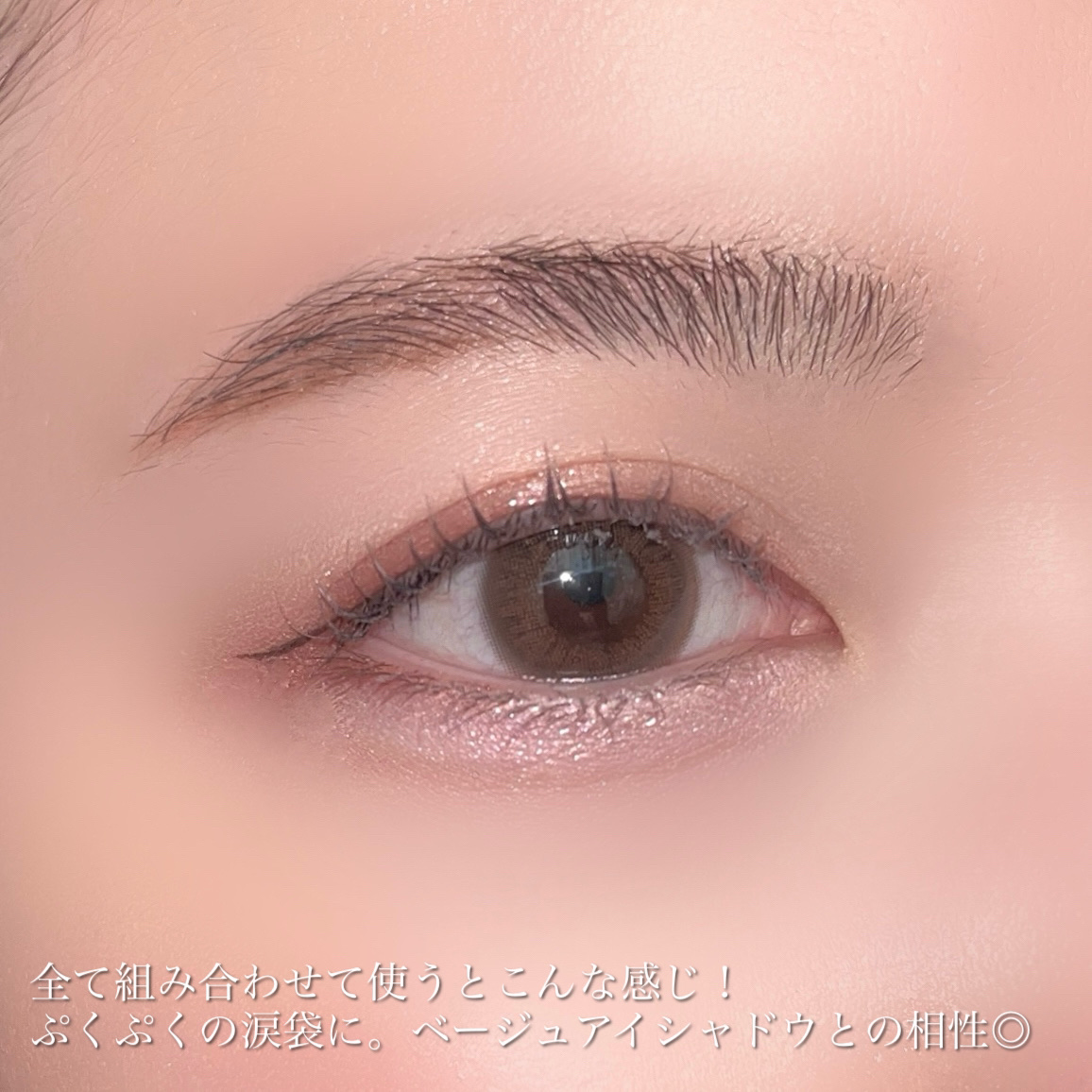 - マット・パール・ラメ入りで3パターンの涙袋が作れる 涙袋用アイシャドウパレット 涙袋用に3色、涙袋の影用に1色がセットされた涙袋用のアイシャドウパレットです。 その日の気分やTPOに合わせて選んでみてくださいね! マットは透け感があり目元のシワが気になりにくく、 パールは繊細で透明感のあるツヤっとした仕上がりに、 ラメはキラキラと輝く透け発色です。 涙袋の影用の「血色影カラー」は、影寄りの色なのに血色感もあって目元が暗くならない パウダーだからこそできた絶妙な色味なんです!