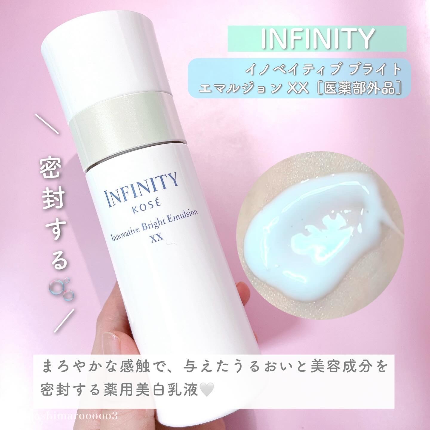 コウジ酸配合で、美白ケア&エイジングケア!! #インフィニティ #イノベイティブブライト ローション XX 年齢を重ねるたびに難しくなる大人の美白に着目✨ シミの悩み点へのアプローチに加え顔全体の面でも光を回すような美白ケアを実現。 特にエマルジョンが気に入りました〜 濃密!! そんなエマルジョン。