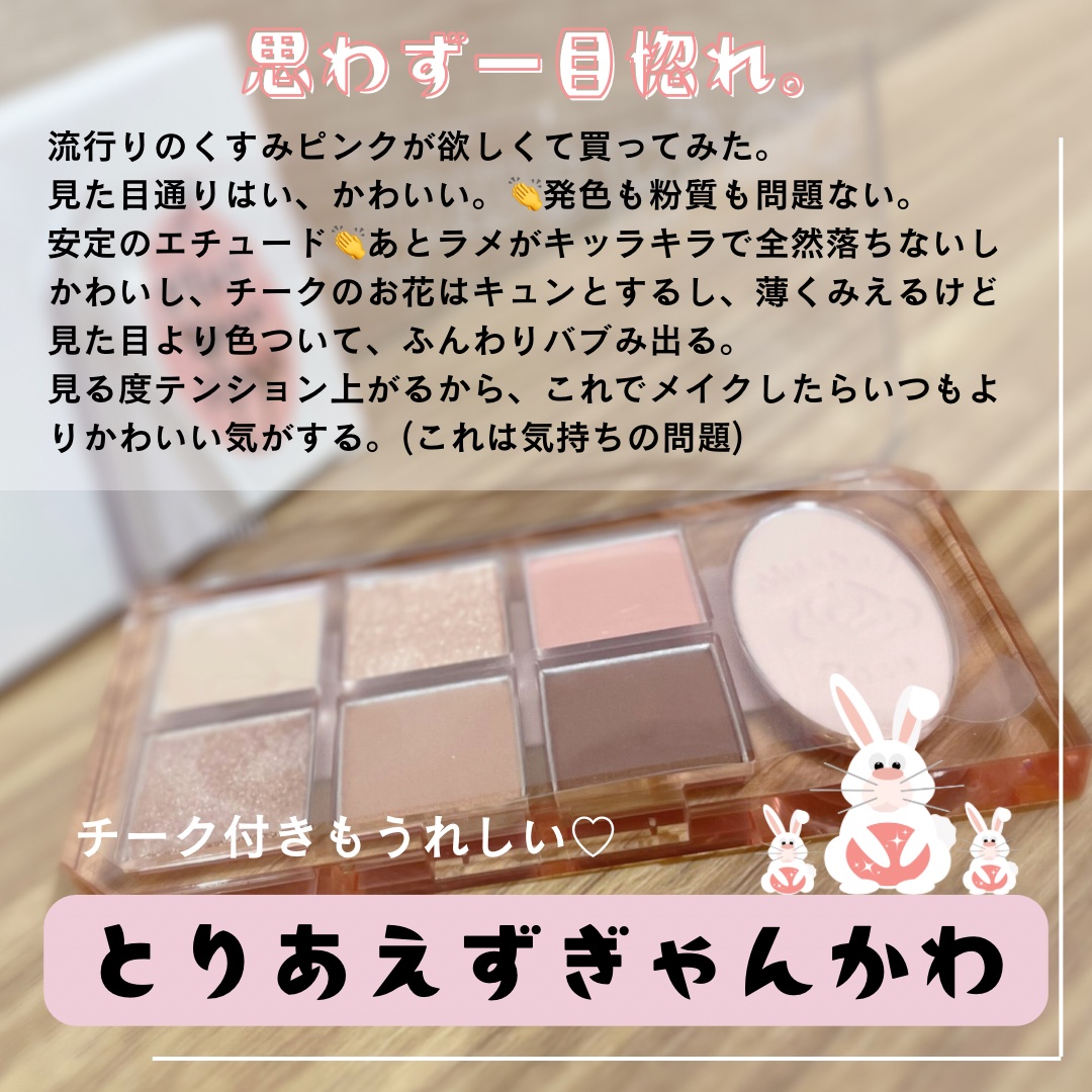 | アイシャドウパレットランキング第74位 | これ一つで何パターンもできる優秀パレットです。捨て色無しはほんとに素晴らしい♡ | 詳細を見る | |
