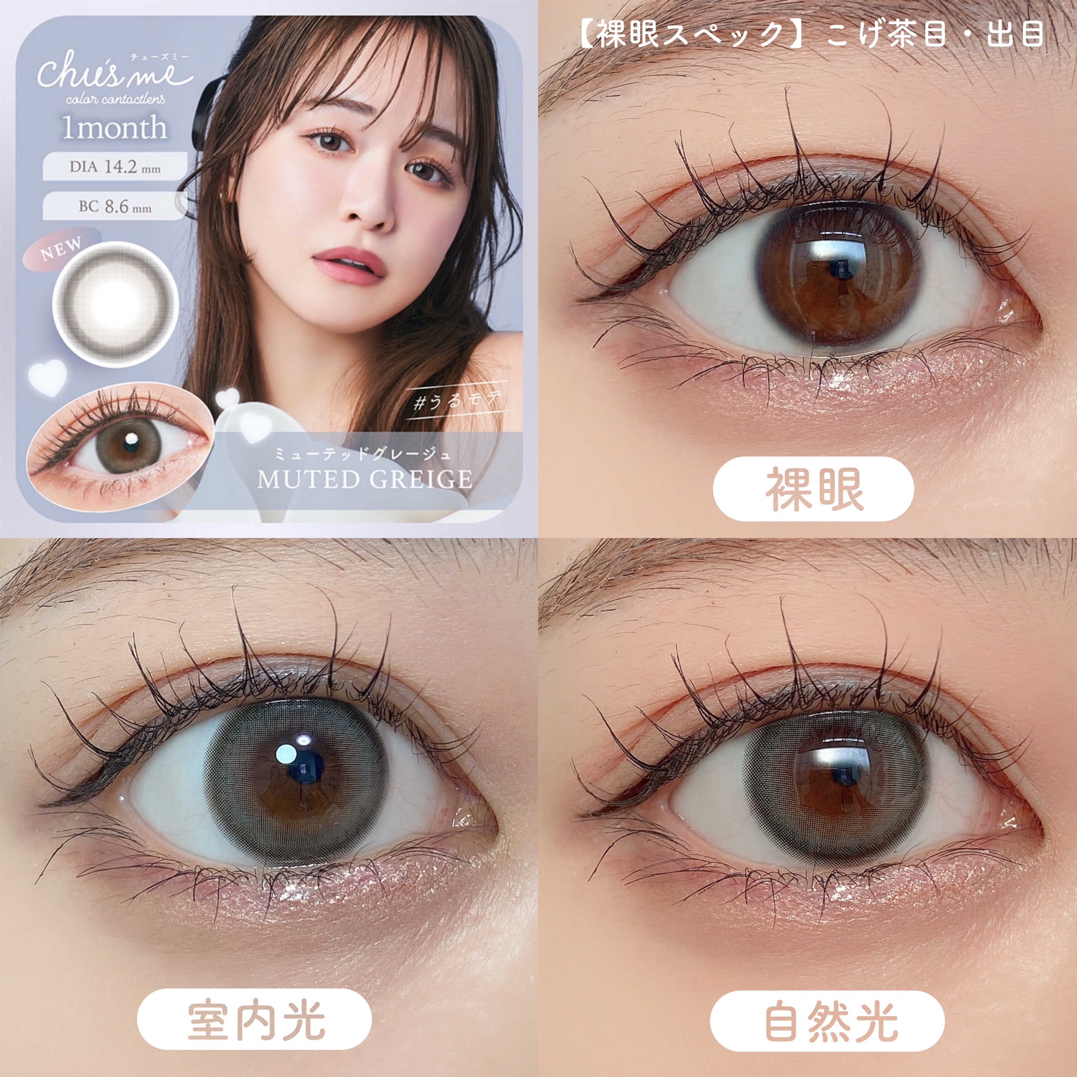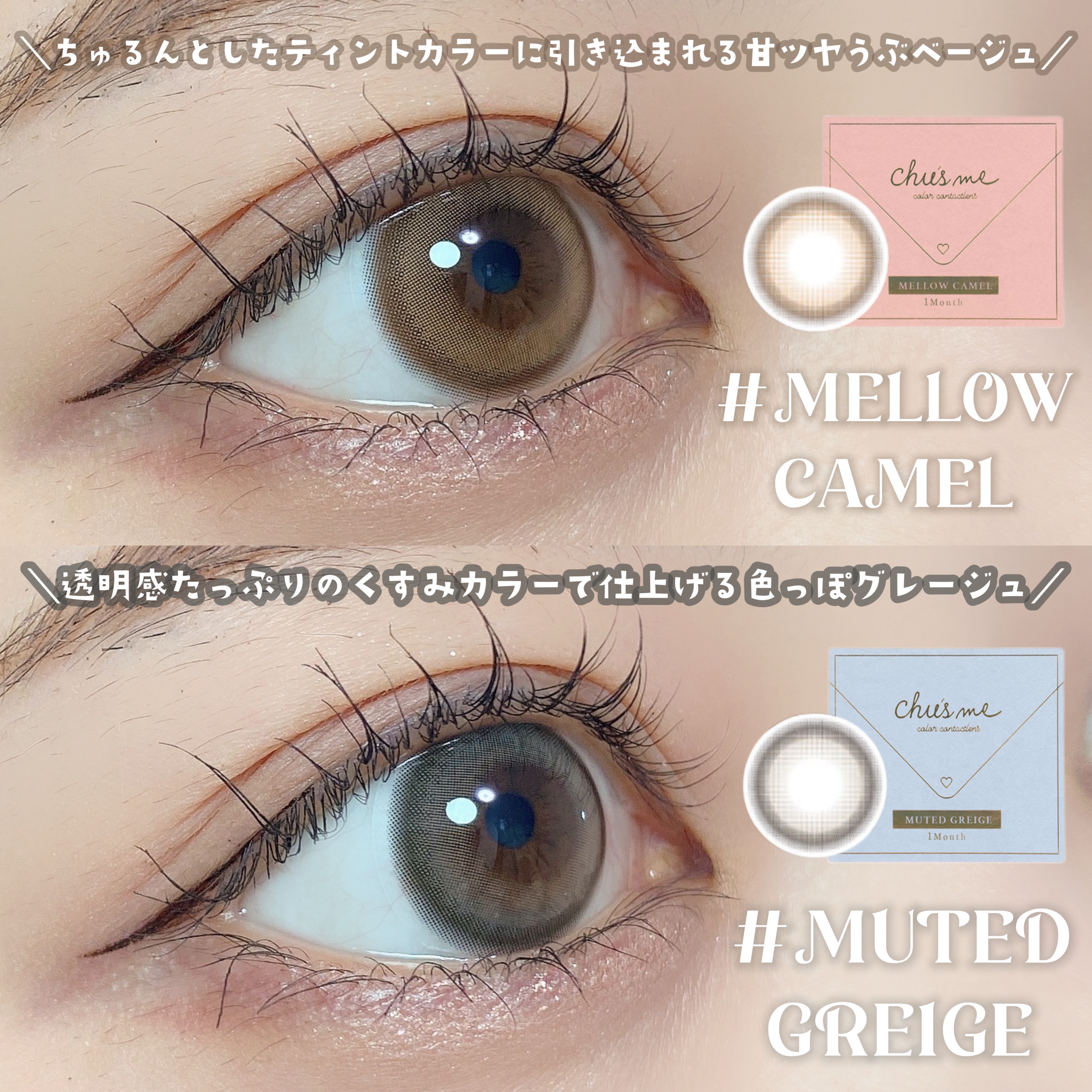 - ※2025年10月中旬より、商品パッケージ順次リニューアル。(レンズスペック・その他情報は変更ございません)尚、パッケージリニューアルに伴う商品の返品・交換は承っておりません。 まるでティントで染めたように色づく、こだわりの「あざと盛れレンズ」が登場 細すぎず、太すぎない絶妙なちゅるんフチとジューシーな色めくティントカラーで、こだわりのあざと盛れレンズがマンスリー限定色としてラインナップに加わりました。 近年ではカラーコンタクトを選ぶときにパーソナルカラーを重視するというユーザーからの意見を参考に商品開発を行い、イエベさんにはつやめく甘みベージュのメロウキャメル、ブルべさんには色っぽさ溢れるミューテッドグレージュがそれぞれの魅力を引き立てるカラーとなっております。 お好きなスタイルやメイクに合わせてお楽しみください。 ●BABY BROWN(ベイビーブラウン) 赤ちゃんの瞳のような透明感演出。ピュアな裸眼系ブラウン。 ●PEACH BROWN(ピーチブラウン) じゅわっと溶け込むように馴染む、あざとピンクブラウン。 ●HONEY BEIGE(ハニーベージュ) 透明感があふれだす、儚げラテベージュ。 ●CHIFFON BROWN(シフォンブラウン) アンニュイな透け感がポイント。ふわっと色素薄い系ブラウン。 ●MOIST BROWN(モイストブラウン) 茶フチが演出する”うるおい”感。甘え上手なちゅるんブラウン。 ●MELLOW CAMEL(メロウキャメル) ちゅるんとしたティントカラーに惹き込まれる 甘ツヤうぶベージュ。 ●MUTED GREIGE(ミューテッドグレージュ) 透明感たっぷりのくすみカラーで 仕上げる色っぽグレージュ。 ●BRULEE CHARM(ブリュレチャーム) 瞳をくりっと見せる濃厚フチ、溶け込むとろ甘焦がしブラウン。 ●BABY MORE(ベイビーモア) ベイビーブラウンのサイズアップ♡ もっとちゅるんと盛れ感をプラス、愛されモテブラウン。 カラーコンタクトレンズの不適正使用による眼障害の危険性等などがあります。 ●コンタクトレンズは高度管理医療機器です。不十分な洗浄・消毒など不適切なケアや、長時間・交換期間を超えた装用により、アレルギー性結膜炎、角膜感染症、角膜潰瘍等の重篤な眼障害が発生する危険性があります ●ご使用前に取扱説明書を確認してください 使用上の留意事項 ●眼科医院等を受診してからお求めください ●眼に異常を感じたら直ちにレンズ使用を中止し、お近くの眼科等で診察を受けてください ●医師の指示にしたがってご使用ください ●コンタクトレンズを装用する場合、自覚症状がなくても、眼科医院等での定期検査を受けてください ●レンズに不具合がある場合は使用しないでください