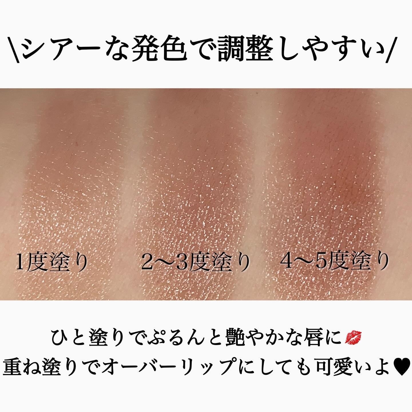 くすみすぎないくすみピンクが欲しくて店頭で手元に試したときのこのしっとり感が良さそうだなと思ったのがきっかけ。 唇に塗ると若干白っぽさを感じるモーヴピンクのような発色に。 ツヤがしっかり乗ってくれるのに発色強めでは無いのでナチュラルに仕上げられるところがお気に入りです。