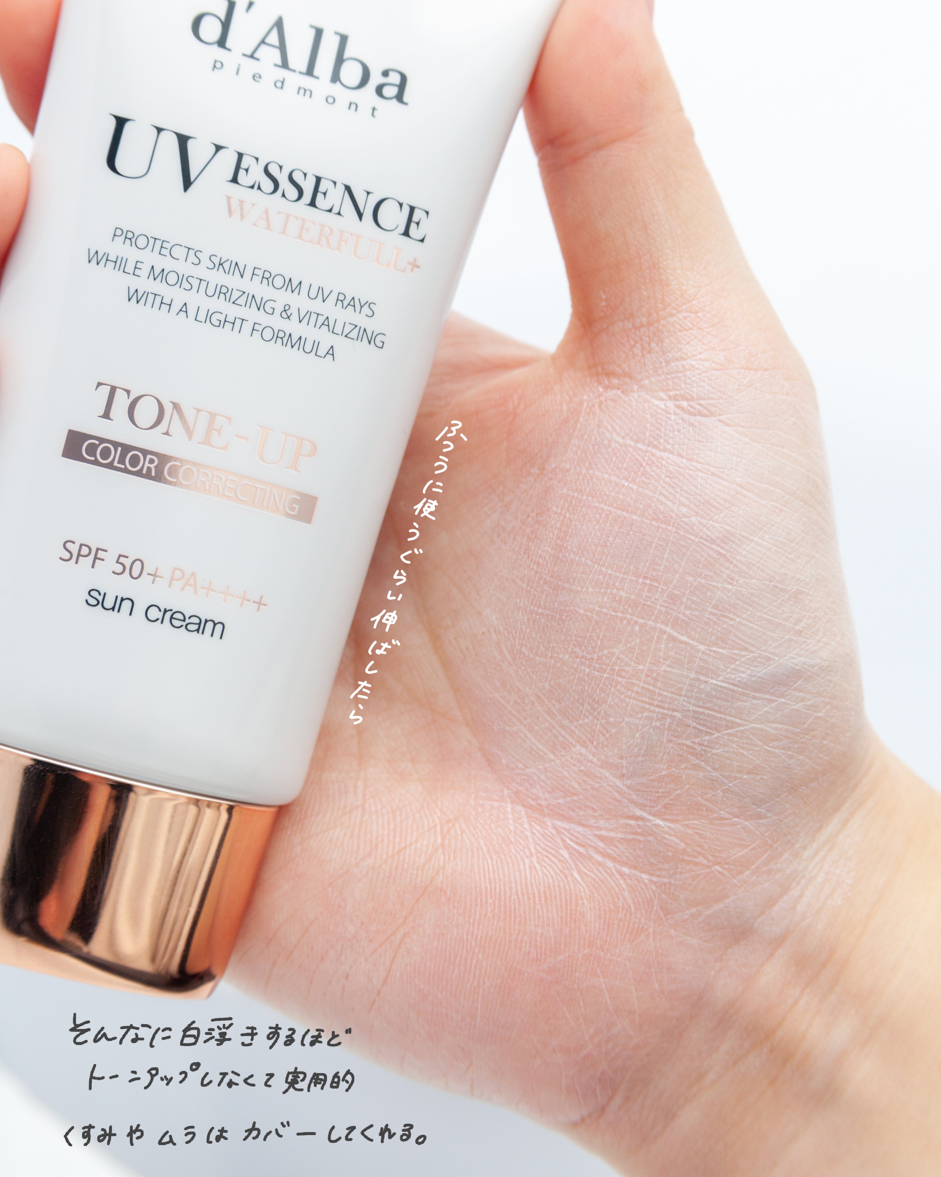 - 日焼けによるしみ、そばかすを防ぎ、水のようななめらかな使用感で肌色をより明るくする※1化粧下地です。 SPF50+PA++++で日焼け止めとしても使用することができ、紫外線から肌を守ります。 イタリアヴィーガン認証V-LABEL取得 皮膚低刺激テスト済み *全ての方に皮膚刺激が発生しないということではありません。 ※1メイクアップ効果による