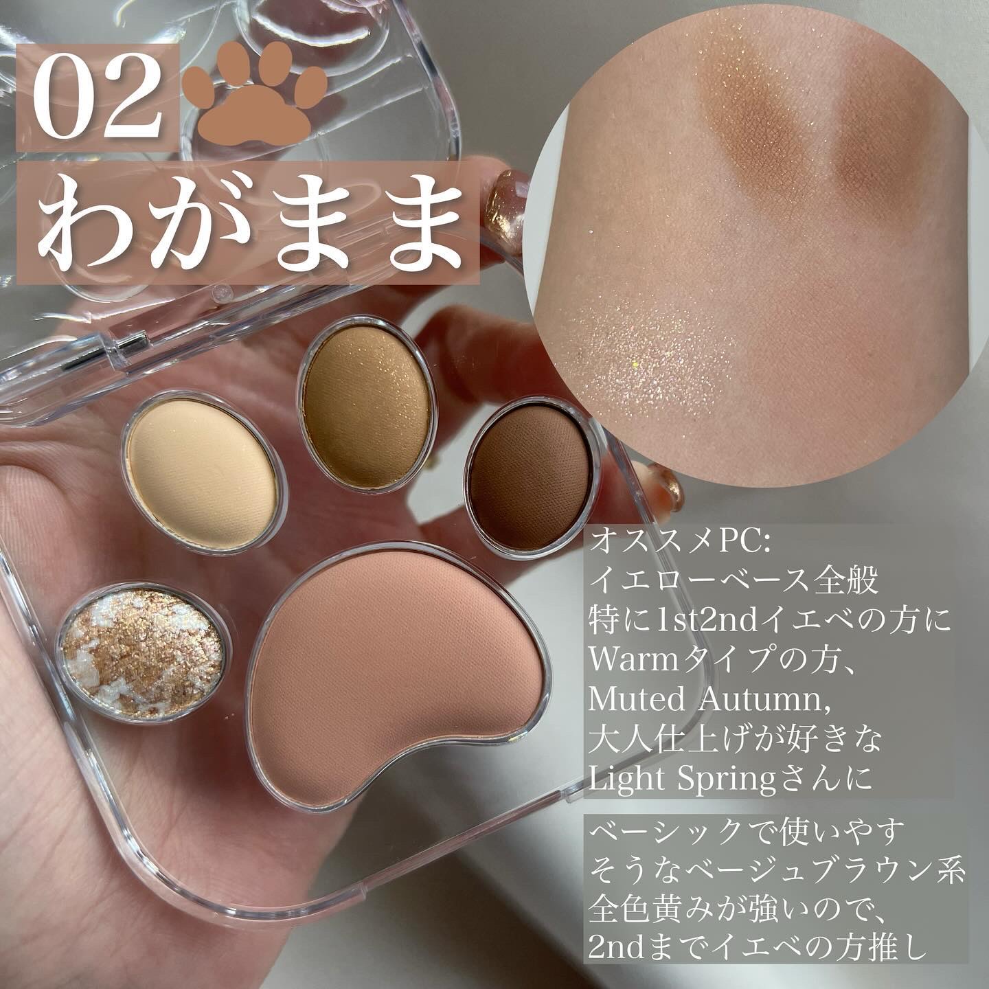 - 肉球モチーフのパッケージ:ベースカラー、締め色、ラメなどから構成された5色パレットは、見た目の可愛さだけでなく機能性も◎。 1つでその日の気分に応じた様々なルックのメイクが完成できます。 毎日違うアイメイクを楽しみたい、気まぐれ猫ちゃんのようなあなたにおすすめです。 コーラル・ラベンダー・ベージュカラーの3パレットが新たに仲間入り! パーソナルカラーに合わせた、お気に入りのねこの手を借りてみて❤︎ 色展開:それぞれのカラーは「甘えんぼ」 「わがまま」など猫の性格を表す商品名がつけられ、各性格をイメージした配色となっております。 柔らかな発色とテクスチャー:MilleFéeのアイシャドウといえば「粉質の柔らかさ」が特徴です。本商品も目元を優しく彩る柔らかな粉質と、春らしい淡めな発色が特徴です。 2024年2月21日より公式ECサイトやオンラインショップ販売開始 2024年3月1日より順次全国のロフトにて1ヶ月間先行販売(一部店舗を除く) 2024年4月1日より全国のバラエティストアにて順次販売(一部店舗を除く)