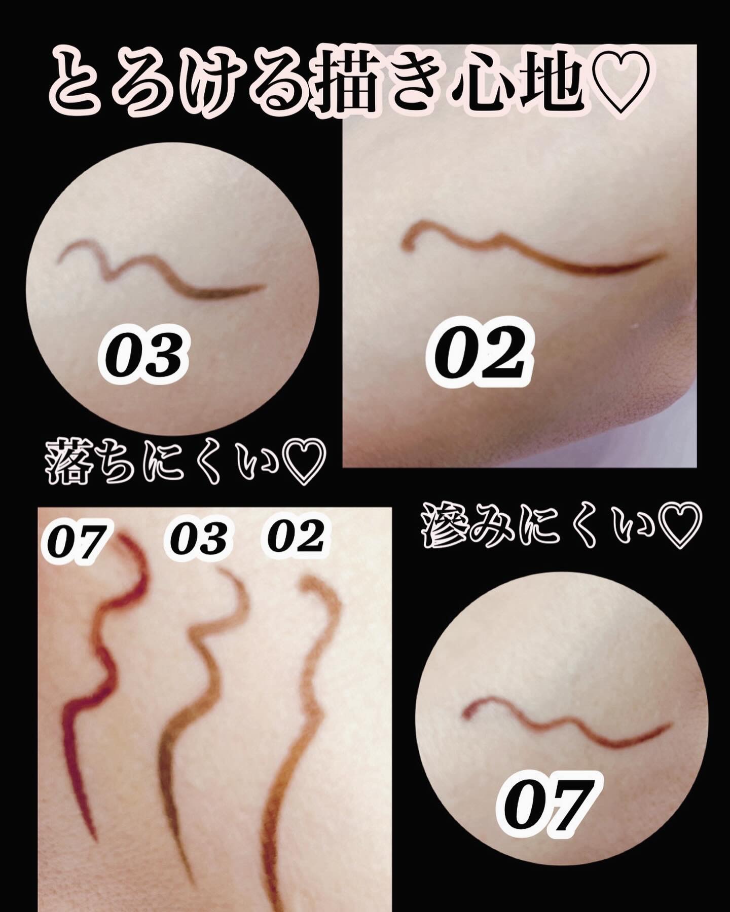 - 2024.6月下旬~ 容器デザインが順次リニューアル 尚、これにかかる商品の返品・交換は承っておりません。 とろける描き心地がたまらない! 1.5mmの超極細ジェルアイライナー くっきり濃密発色!キレイなラインが長続き。 1.5mmの超極細芯で、まつげのすき間埋めもラクラク♪ くり出しタイプなので使いやすい! 一度乾いて密着すれば、とにかく落ちにくい!