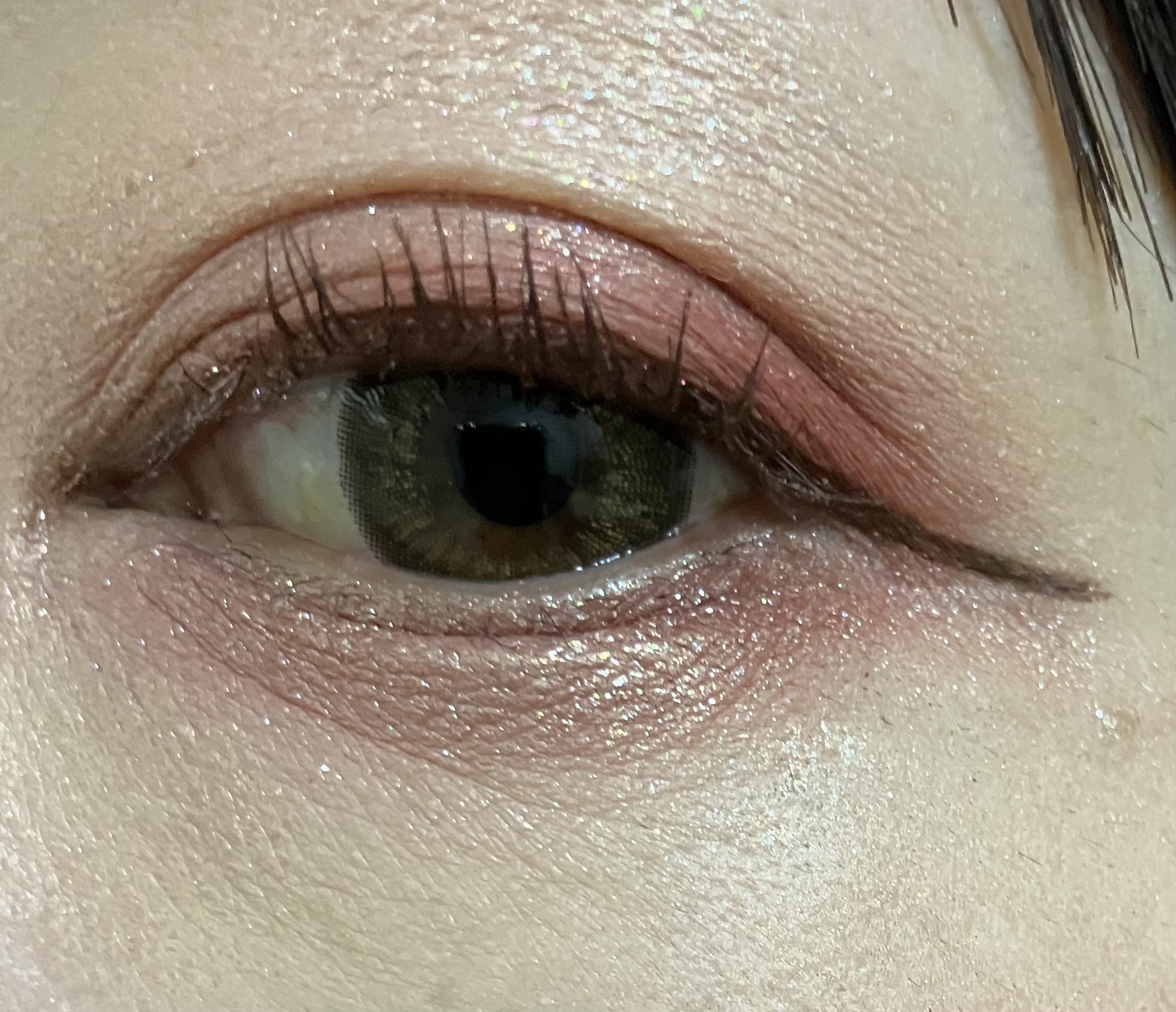 右上の淡いカラーに左上のラメを重ねました😊 さらに右下オレンジを重ねて、ブラウンをライナーにつかいました✨️ 2個目は、電話予約ができたのでバレンタイン日発売のパレットをGETする予定です🫶