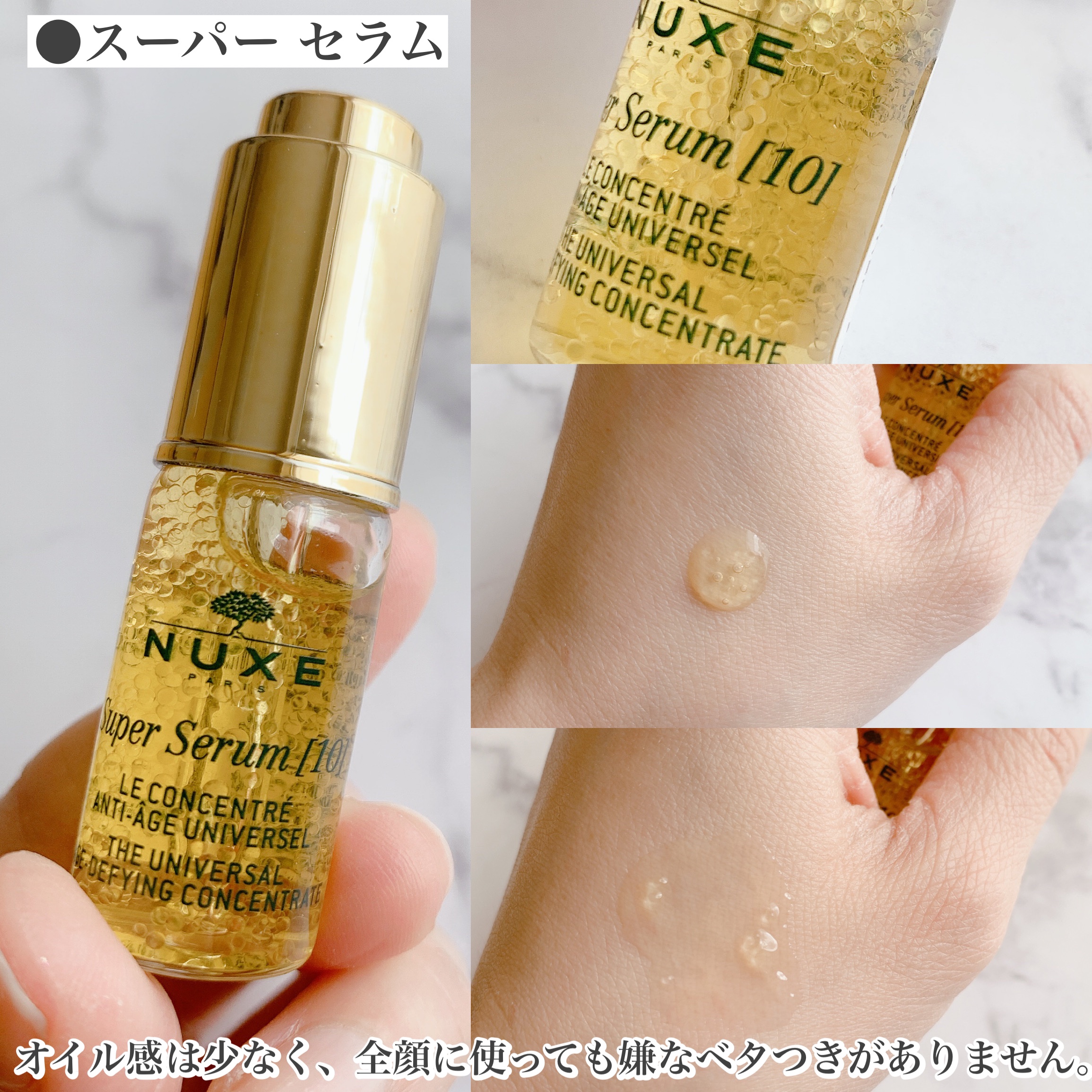 さらりとしているけど少しオイルのコクも感じるようななめらかで伸ばしやすいテクスチャーです。 ファンデーションというより、ほぼほぼ美容液オイルを伸ばしているような感覚。 薄膜でナチュラル。素肌感を残した仕上がりで、元の肌がほんのり透けるけど、色ムラやくすみはしっかりカバーしてくれます。 付け心地はほんとにスキンケア後なようなしっとり感! 夕方になると乾燥肌の私でも若干テカッきますがドロッとした汚いヨレ方、崩れ方にはならずティッシュオフすれば元通り。 肌がカピッとしてきやすい今の季節にこそヘビロテしたいファンデーションです♡