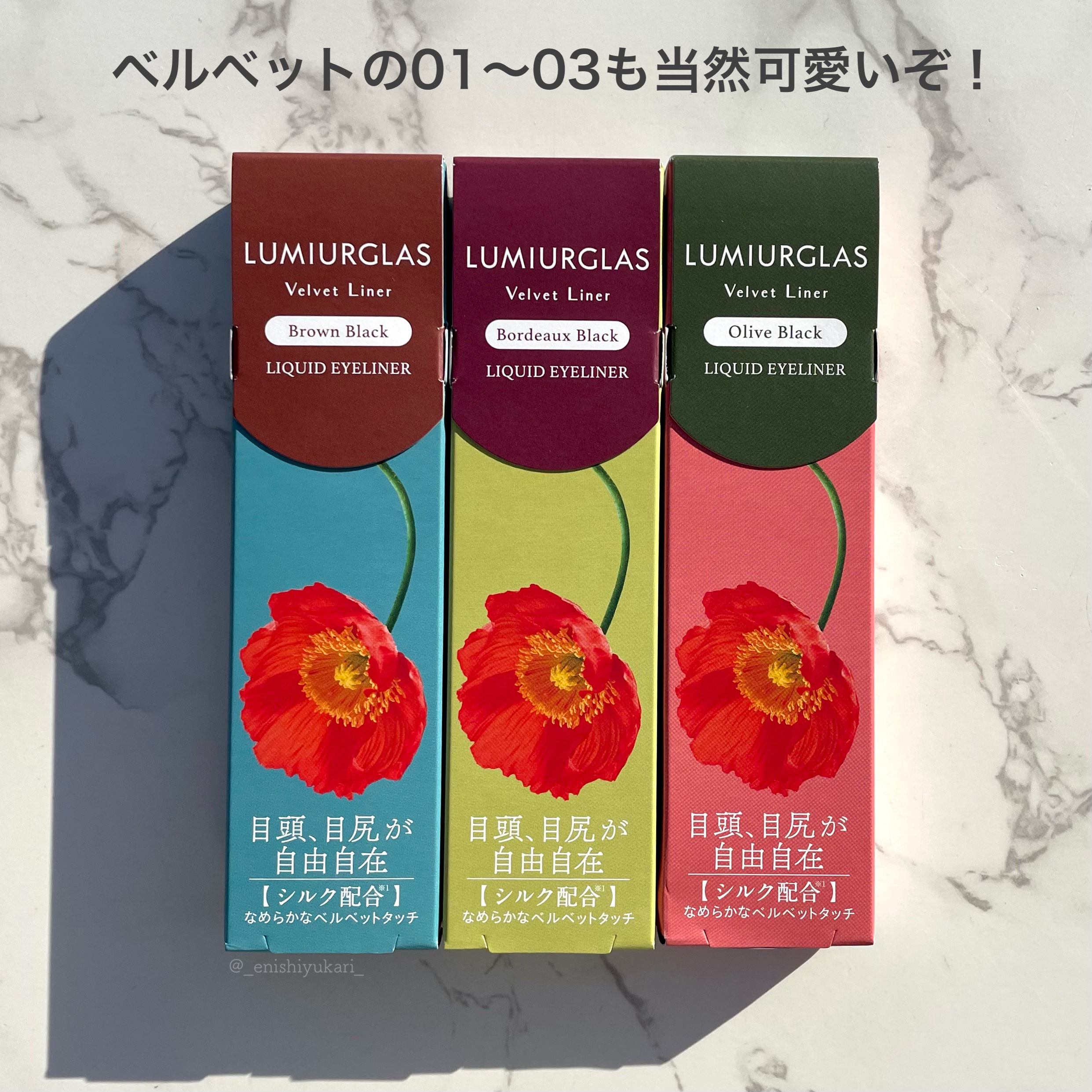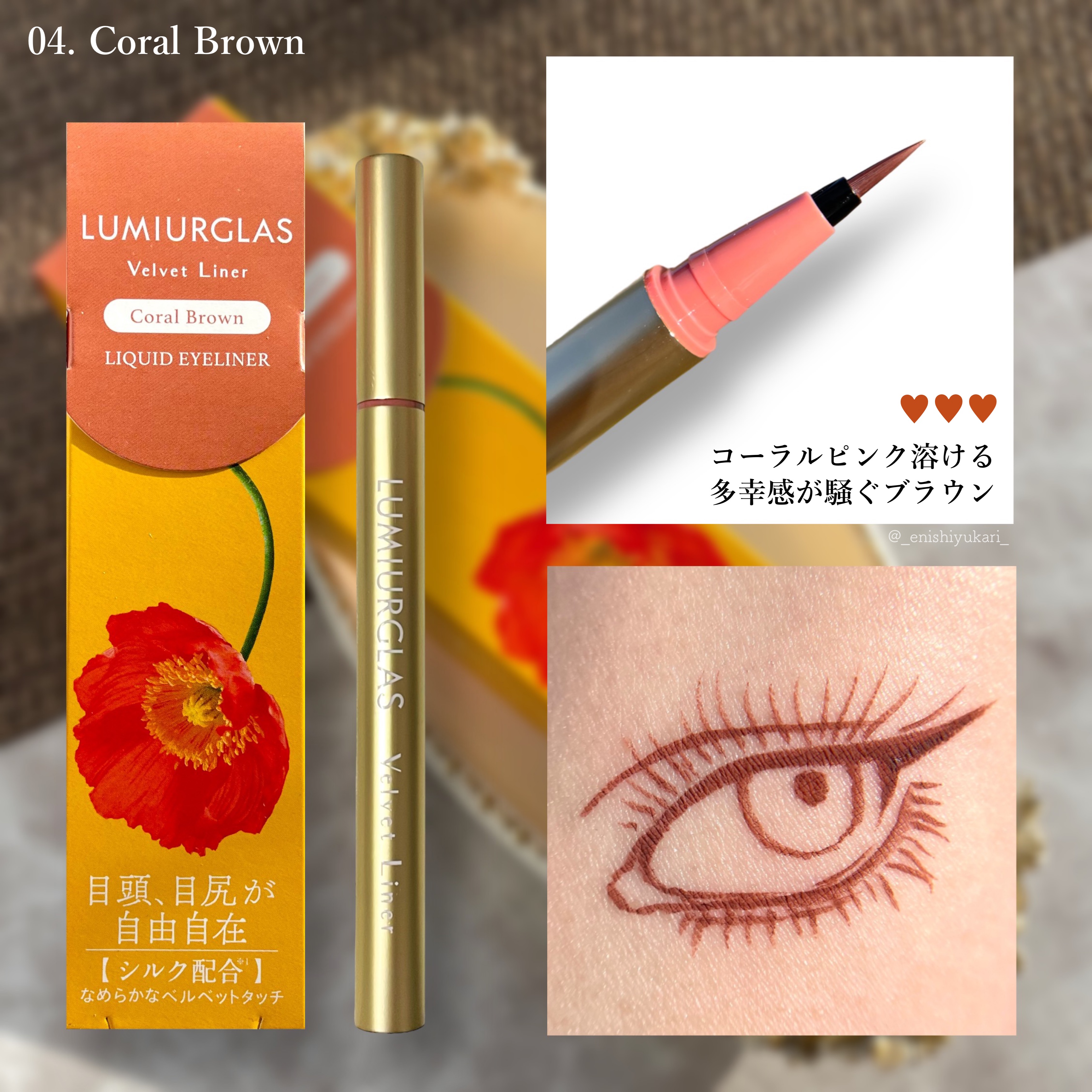 新感覚なベルベットライナーを頂きました🫶🏻 これ好み!! アイラインがぱきっとし過ぎちゃうのも、ぼやけるのもなぁ。。と探してたらこんなに素敵なものが👀✨ 肌馴染みよくていい🥰 LUMIURGLASのアイライナーはおしゃれなカラーがいっぱいで他にもオリーブブラックやボルドーブラック、ヘーゼルカーキやピンクヘイズブラウン等他にもいっぱいもあるよ👀✨