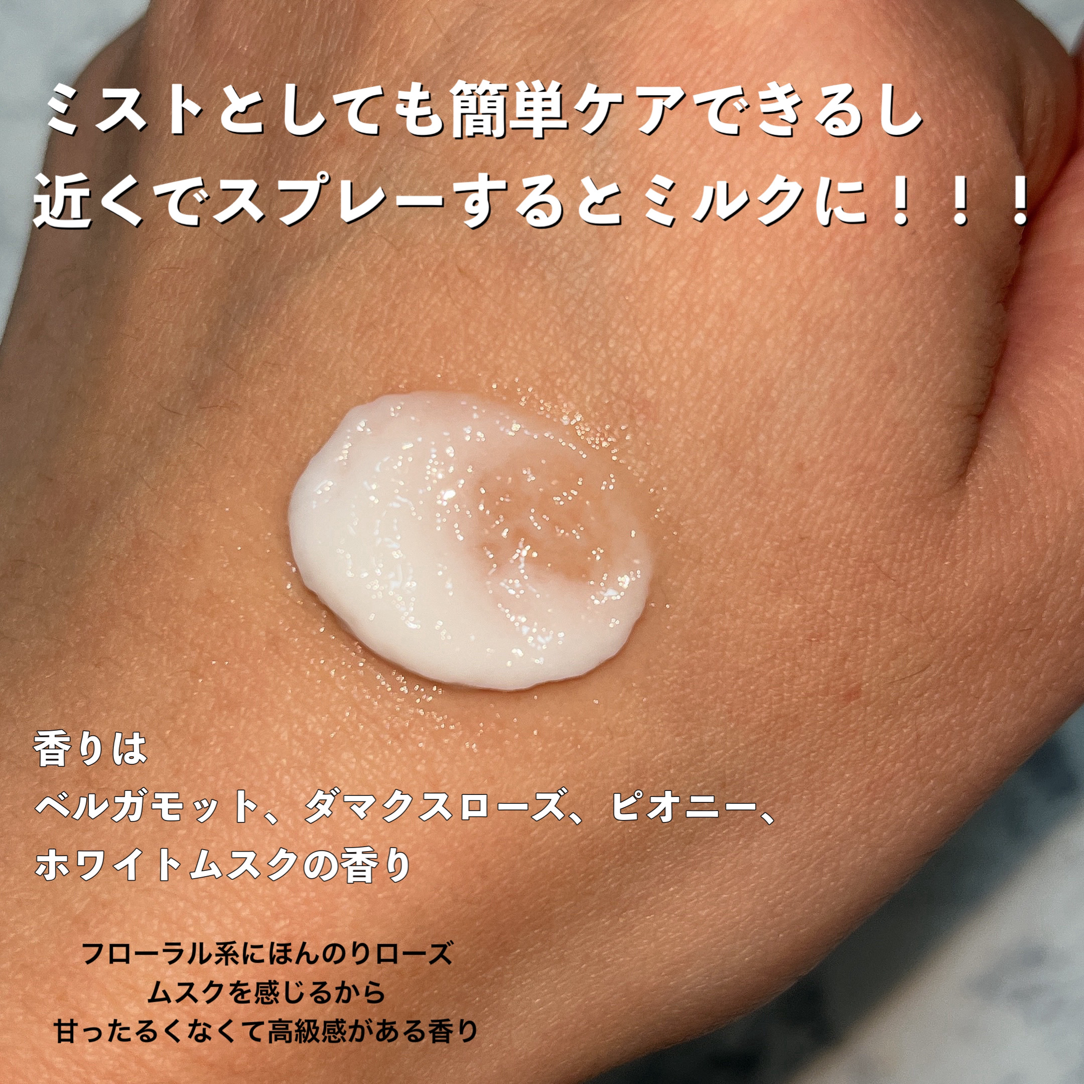 | スペシャルヘアケアランキング第133位 | ミストとトリートメントを割ったような とろみのあるテクスチャーで、 髪にしっとりとした潤いと、 ムスクの香りが広がります♥ | 詳細を見る |