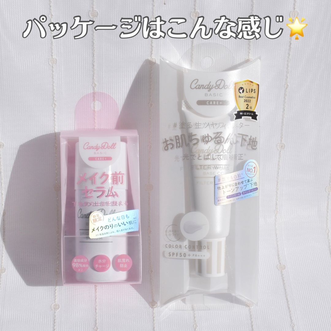 メイクで叶える透明感白肌✨ 益若つばささんプロデュースのCandyDollから、3月5日に発売されるベースメイクアイテムをお試しさせていただきました! メイク前セラムは、名前のとおりメイクの前に使う美容液スプレー。シュッと吹きかけるだけで水分をチャージして肌をなめらかに整え、ベースメイクの厚塗り感、塗りむら、乾燥や皮脂崩れを防ぐアイテムです。 ナチュラルだけど透明感が増したような印象になれるので、自然なトーンアップが叶うアイテムだと思います✨