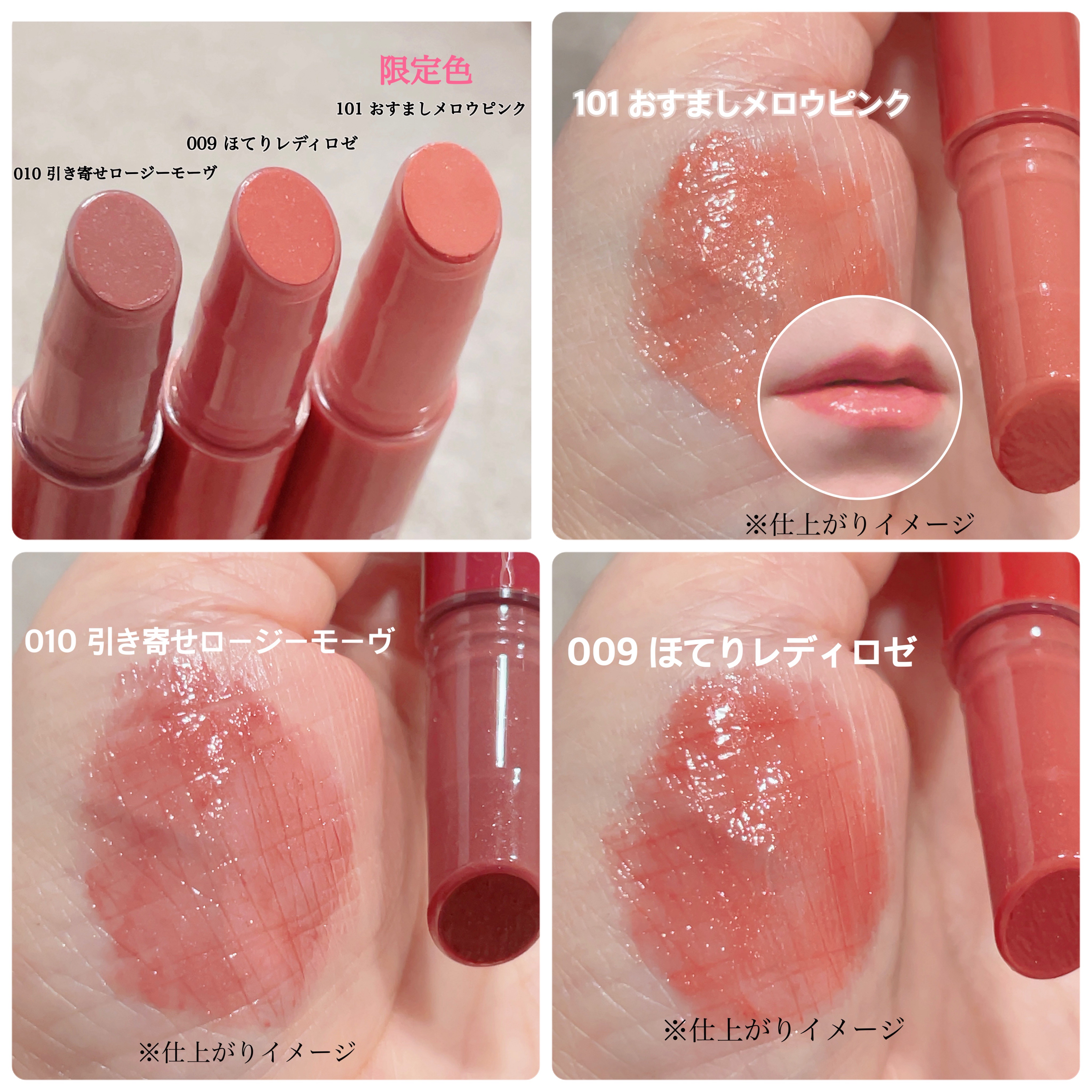 - <004 おめざめヌーディピンク> ポリブテン、ダイマージリノール酸(フィトステリル/イソステアリル/セチル/ステアリル/ベヘニル)、テトラエチルヘキサン酸ペンタエリスリチル、ヘキサ(ヒドロキシステアリン酸/ステアリン酸/ロジン酸)ジペンタエリスリチル、リンゴ酸ジイソステアリル、水添ポリイソブテン、炭酸ジアルキル(C14,15)、シクロペンタシロキサン、ダイマージリノレイル水添ロジン縮合物、トリイソステアリン酸ポリグリセリル-2、ステアリルジメチコン、合成ワックス、マイクロクリスタリンワックス、ジメチルシリル化シリカ、トコフェロール、パルミチン酸アスコルビル、ヒポファエラムノイデス果実油、ブドウ種子油、BHT、DPG、(アクリル酸/アクリル酸アルキル(C10-30))コポリマー、(エチレン/プロピレン)コポリマー、(ジメチコン/ビニルジメチコン)クロスポリマー、シリカ、ジメチコン、スクワラン、トリ(カプリル酸/カプリン酸)グリセリル、トリイソステアリン酸イソプロピルチタン、ハイドロゲンジメチコン、ホウケイ酸(Ca/Al)、メチコン、メントール、酸化スズ、水酸化Al、フェノキシエタノール、香料、マイカ、酸化チタン、酸化鉄、黄4、赤202、赤218、赤223 <005 いたずらまろみベージュ> ポリブテン、ダイマージリノール酸(フィトステリル/イソステアリル/セチル/ステアリル/ベヘニル)、テトラエチルヘキサン酸ペンタエリスリチル、ヘキサ(ヒドロキシステアリン酸/ステアリン酸/ロジン酸)ジペンタエリスリチル、リンゴ酸ジイソステアリル、水添ポリイソブテン、炭酸ジアルキル(C14,15)、シクロペンタシロキサン、トリイソステアリン酸ポリグリセリル-2、ダイマージリノレイル水添ロジン縮合物、合成ワックス、ステアリルジメチコン、マイクロクリスタリンワックス、ジメチルシリル化シリカ、トコフェロール、パルミチン酸アスコルビル、ヒポファエラムノイデス果実油、ブドウ種子油、BHT、DPG、(アクリル酸/アクリル酸アルキル(C10-30))コポリマー、(エチレン/プロピレン)コポリマー、(ジメチコン/ビニルジメチコン)クロスポリマー、シリカ、ジメチコン、スクワラン、トリ(カプリル酸/カプリン酸)グリセリル、トリイソステアリン酸イソプロピルチタン、ハイドロゲンジメチコン、ホウケイ酸(Ca/Al)、メチコン、メントール、酸化スズ、水酸化Al、フェノキシエタノール、香料、マイカ、酸化チタン、酸化鉄、黄4、赤202、赤218、赤223 <010 引き寄せロージーモーヴ> ポリブテン、ダイマージリノール酸(フィトステリル/イソステアリル/セチル/ステアリル/ベヘニル)、テトラエチルヘキサン酸ペンタエリスリチル、ヘキサ(ヒドロキシステアリン酸/ステアリン酸/ロジン酸)ジペンタエリスリチル、リンゴ酸ジイソステアリル、水添ポリイソブテン、炭酸ジアルキル(C14,15)、シクロペンタシロキサン、ダイマージリノレイル水添ロジン縮合物、合成ワックス、ステアリルジメチコン、トリイソステアリン酸ポリグリセリル-2、マイクロクリスタリンワックス、ジメチルシリル化シリカ、トコフェロール、パルミチン酸アスコルビル、ヒポファエラムノイデス果実油、ブドウ種子油、BHT、DPG、(アクリル酸/アクリル酸アルキル(C10-30))コポリマー、(エチレン/プロピレン)コポリマー、(ジメチコン/ビニルジメチコン)クロスポリマー、シリカ、ジメチコン、スクワラン、テトライソステアリン酸ポリグリセリル-2、トリ(カプリル酸/カプリン酸)グリセリル、トリイソステアリン酸イソプロピルチタン、ハイドロゲンジメチコン、ホウケイ酸(Ca/Al)、メチコン、メントール、酸化スズ、水酸化Al、フェノキシエタノール、香料、マイカ、酸化チタン、酸化鉄、黄4、赤202、赤218 <011 センチなうるみピンク> ポリブテン、ダイマージリノール酸(フィトステリル/イソステアリル/セチル/ステアリル/ベヘニル)、テトラエチルヘキサン酸ペンタエリスリチル、ヘキサ(ヒドロキシステアリン酸/ステアリン酸/ロジン酸)ジペンタエリスリチル、リンゴ酸ジイソステアリル、水添ポリイソブテン、炭酸ジアルキル(C14,15)、シクロペンタシロキサン、トリイソステアリン酸ポリグリセリル-2、ダイマージリノレイル水添ロジン縮合物、合成ワックス、ステアリルジメチコン、マイクロクリスタリンワックス、ジメチルシリル化シリカ、トコフェロール、パルミチン酸アスコルビル、ヒポファエラムノイデス果実油、ブドウ種子油、BHT、DPG、(アクリル酸/アクリル酸アルキル(C10-30))コポリマー、(エチレン/プロピレン)コポリマー、(ジメチコン/ビニルジメチコン)クロスポリマー、シリカ、ジメチコン、スクワラン、トリ(カプリル酸/カプリン酸)グリセリル、トリイソステアリン酸イソプロピルチタン、ハイドロゲンジメチコン、メチコン、メントール、水酸化Al、フェノキシエタノール、香料、酸化チタン、酸化鉄、黄4、赤202、赤218 <012 酔い心地モーヴブラウン> ポリブテン、ダイマージリノール酸(フィトステリル/イソステアリル/セチル/ステアリル/ベ