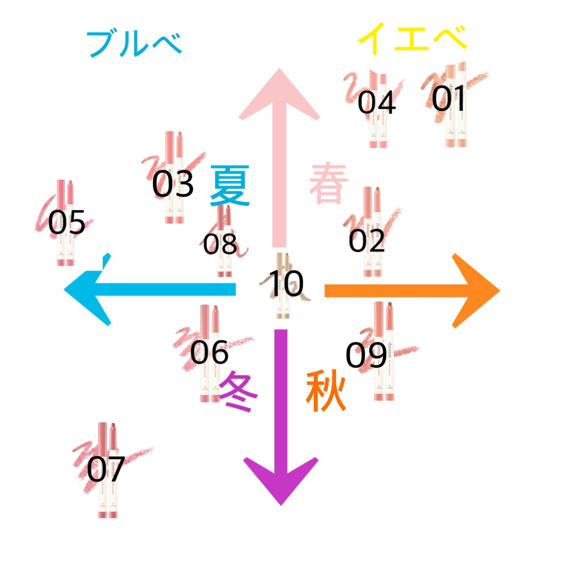 - <01 サンドベージュ> イソノナン酸イソノニル、水添ポリデセン、ジ(カプリル/カプリン酸)BG、シリカ、セレシン、(ビニルジメチコン/メチコンシルセスキオキサン)クロスポリマー、合成ワックス、ジメチコン、トリイソステアリン酸ポリグリセリル-2、合成フルオロフロゴパイト、セスキオレイン酸ソルビタン、ジメチコンクロスポリマー、ポリヒドロキシステアリン酸、酢酸トコフェロール、フェノキシエタノール、テトラ(ジ-t-ブチルヒドロキシヒドロケイヒ酸)ペンタエリスリチル、カニナバラ果実油、アンズ核油、酸化チタン、酸化鉄 <02 アーモンドコーラル> イソノナン酸イソノニル、水添ポリデセン、ジ(カプリル/カプリン酸)BG、シリカ、セレシン、(ビニルジメチコン/メチコンシルセスキオキサン)クロスポリマー、合成ワックス、トリイソステアリン酸ポリグリセリル-2、ジメチコン、セスキオレイン酸ソルビタン、ジメチコンクロスポリマー、ポリヒドロキシステアリン酸、合成フルオロフロゴパイト、酢酸トコフェロール、フェノキシエタノール、テトラ(ジ-t-ブチルヒドロキシヒドロケイヒ酸)ペンタエリスリチル、カニナバラ果実油、アンズ核油、酸化チタン、酸化鉄、赤104(1) <03 ピーチクリーム> イソノナン酸イソノニル、水添ポリデセン、ジ(カプリル/カプリン酸)BG、シリカ、セレシン、(ビニルジメチコン/メチコンシルセスキオキサン)クロスポリマー、合成ワックス、ジメチコン、トリイソステアリン酸ポリグリセリル-2、合成フルオロフロゴパイト、セスキオレイン酸ソルビタン、ジメチコンクロスポリマー、ポリヒドロキシステアリン酸、酢酸トコフェロール、フェノキシエタノール、テトラ(ジ-t-ブチルヒドロキシヒドロケイヒ酸)ペンタエリスリチル、カニナバラ果実油、アンズ核油、酸化チタン、酸化鉄、赤202、赤201 <04 サーモン> イソノナン酸イソノニル、水添ポリデセン、ジ(カプリル/カプリン酸)BG、シリカ、セレシン、(ビニルジメチコン/メチコンシルセスキオキサン)クロスポリマー、合成ワックス、ジメチコン、トリイソステアリン酸ポリグリセリル-2、合成フルオロフロゴパイト、セスキオレイン酸ソルビタン、ジメチコンクロスポリマー、ポリヒドロキシステアリン酸、酢酸トコフェロール、フェノキシエタノール、テトラ(ジ-t-ブチルヒドロキシヒドロケイヒ酸)ペンタエリスリチル、カニナバラ果実油、アンズ核油、酸化チタン、赤201、黄4、酸化鉄、赤104(1) <05 ピンクシュー> イソノナン酸イソノニル、水添ポリデセン、ジ(カプリル/カプリン酸)BG、シリカ、セレシン、(ビニルジメチコン/メチコンシルセスキオキサン)クロスポリマー、合成ワックス、ジメチコン、トリイソステアリン酸ポリグリセリル-2、セスキオレイン酸ソルビタン、合成フルオロフロゴパイト、ジメチコンクロスポリマー、ポリヒドロキシステアリン酸、酢酸トコフェロール、フェノキシエタノール、テトラ(ジ-t-ブチルヒドロキシヒドロケイヒ酸)ペンタエリスリチル、カニナバラ果実油、アンズ核油、酸化チタン、黄4、赤104(1)、赤202、赤201 <06 ミスティーライラック> イソノナン酸イソノニル、水添ポリデセン、ジ(カプリル/カプリン酸)BG、シリカ、セレシン、(ビニルジメチコン/メチコンシルセスキオキサン)クロスポリマー、合成ワックス、トリイソステアリン酸ポリグリセリル-2、ジメチコン、セスキオレイン酸ソルビタン、ジメチコンクロスポリマー、ポリヒドロキシステアリン酸、合成フルオロフロゴパイト、酢酸トコフェロール、フェノキシエタノール、テトラ(ジ-t-ブチルヒドロキシヒドロケイヒ酸)ペンタエリスリチル、カニナバラ果実油、アンズ核油、酸化チタン、赤104(1)、酸化鉄、黄4、青1 <07 ローズクリーム> イソノナン酸イソノニル、水添ポリデセン、ジ(カプリル/カプリン酸)BG、シリカ、セレシン、(ビニルジメチコン/メチコンシルセスキオキサン)クロスポリマー、トリイソステアリン酸ポリグリセリル-2、合成ワックス、ジメチコン、セスキオレイン酸ソルビタン、ジメチコンクロスポリマー、ポリヒドロキシステアリン酸、酢酸トコフェロール、フェノキシエタノール、合成フルオロフロゴパイト、テトラ(ジ-t-ブチルヒドロキシヒドロケイヒ酸)ペンタエリスリチル、カニナバラ果実油、アンズ核油、酸化チタン、赤104(1)、酸化鉄、黄4、青1 <08 オーバーピンク> イソノナン酸イソノニル、水添ポリデセン、ジ(カプリル/カプリン酸)BG、シリカ、セレシン、(ビニルジメチコン/メチコンシルセスキオキサン)クロスポリマー、合成ワックス、ジメチコン、トリイソステアリン酸ポリグリセリル-2、セスキオレイン酸ソルビタン、ジメチコンクロスポリマー、ポリヒドロキシステアリン酸、合成フルオロフロゴパイト、酢酸トコフェロール、フェノキシエタノール、テトラ(ジ-t-ブチルヒドロキシヒドロケイヒ酸)ペンタエリスリチル、カニナバラ果実油、アンズ核油、酸化チタン、酸化鉄、赤202 <09 コーラルクレープ> イ