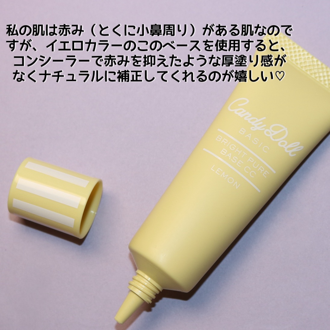 - 大人気商品のブライトピュアベースが透明感にこだわってリニューアル♡! ★商品POINT★ ①こだわりのいいとこどりカラー 肌のくすみ、赤み・ニキビ跡など様々な肌の悩みをしっかりカバーして、ただ肌を白くみせるのではなく、透けちゃうような透明感をプラスしながら肌をパンっと明るい印象にトーンアップ*♡ ②高い紫外線カット効果 SPF50+ PA+++だから、肌に透明感をプラスしながらしっかり紫外線を防いで大切なお肌の日焼けを防止。1本で日焼け止め代わりにも♡ ③ お肌に優しい使い心地のうるおいケア処方 毎日使うものだから、お肌のことを考えて、3種のケア成分&CandyDollこだわりの美容成分を追加配合。たっぷりの美容保湿成分でお肌に優しい使い心地で保湿ケア。 お肌の乾燥くすみ・色ムラが気になる方に! *メーキャップ効果による