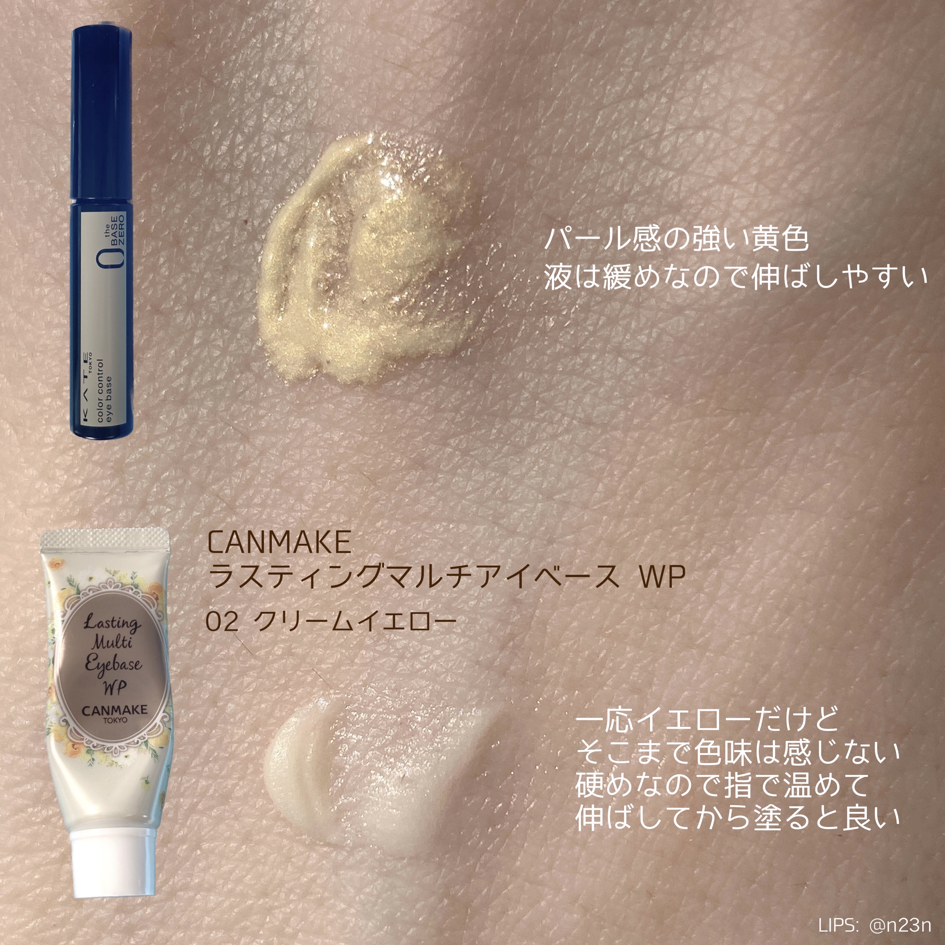 🟡キャンメイクラスティングマルチアイベースWP02クリームイエロー半分くらい使ったのでれぽ!紫とイエローの種類がありますが、イエローは整肌成分配合。黄色いから、黄み補正なのかな〜と思って買ったけど特に黄み補正は感じませんでした。ラメ、パール感...