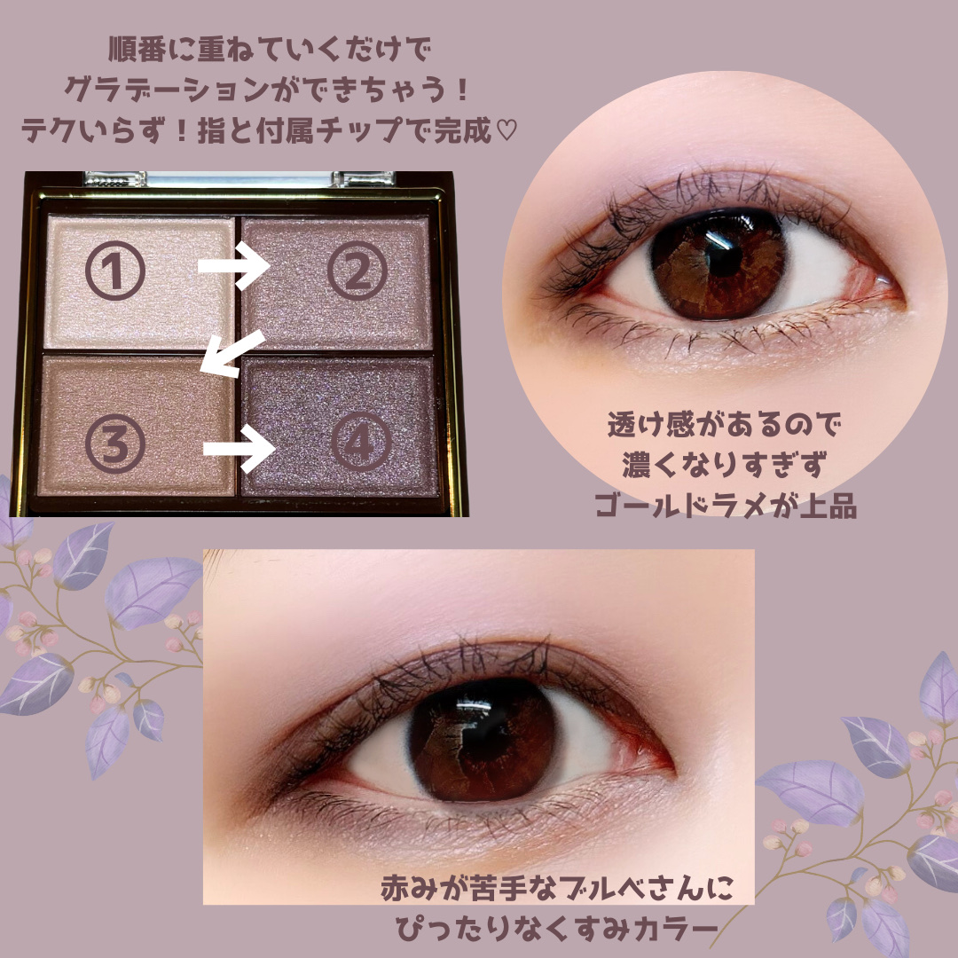 | 3つの異なる質感からなる4色パレットで、使い方によって雰囲気も質感も変わっていきます✨ | 詳細を見る |