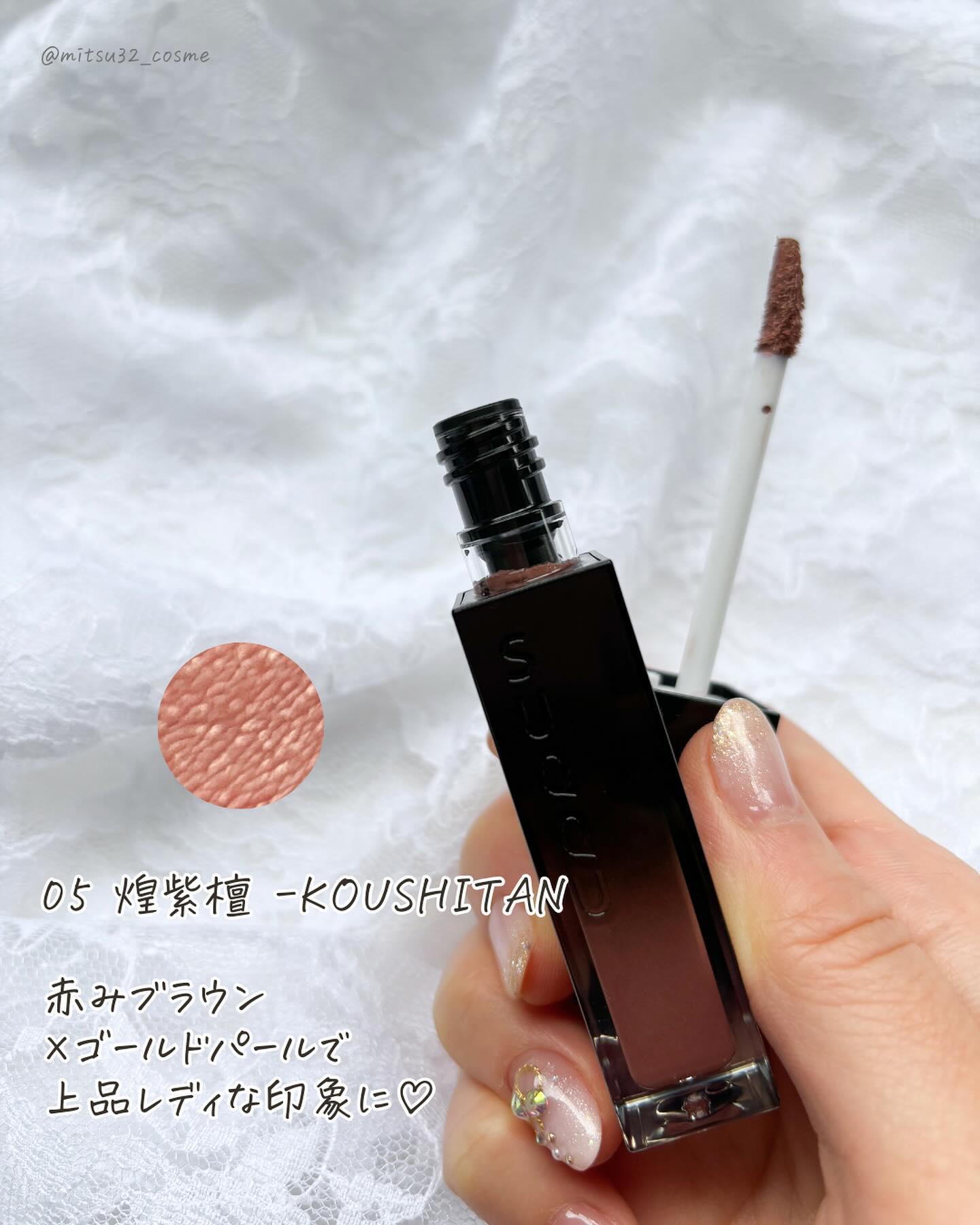 - <01 桃簾石 - TOURENSEKI> イソドデカン、リンゴ酸ジイソステアリル、パルミチン酸デキストリン、ジメチコン、トリメチルシロキシケイ酸、ペンタイソステアリン酸ジペンタエリスリチル、(ジメチコン/ビニルジメチコン)クロスポリマー、セスキイソステアリン酸ソルビタン、イソステアリン酸ソルビタン、シメチコン、トコフェロール、ホホバ種子油、スクワラン、シリカ、ヒアルロン酸Na、フェノキシエタノール、(+/-)ホウケイ酸(Ca/Al)、酸化チタン、酸化鉄、マイカ、黄4、赤202、水酸化Al、酸化スズ <02 白金 - HAKUKIN> イソドデカン、リンゴ酸ジイソステアリル、パルミチン酸デキストリン、ジメチコン、トリメチルシロキシケイ酸、ペンタイソステアリン酸ジペンタエリスリチル、(ジメチコン/ビニルジメチコン)クロスポリマー、セスキイソステアリン酸ソルビタン、イソステアリン酸ソルビタン、シメチコン、トコフェロール、ホホバ種子油、スクワラン、シリカ、ヒアルロン酸Na、フェノキシエタノール、(+/-)ホウケイ酸(Ca/Al)、酸化チタン、酸化鉄、マイカ、黄4、赤202、水酸化Al、酸化スズ <03 涙星 - NAMIDABOSHI> イソドデカン、リンゴ酸ジイソステアリル、パルミチン酸デキストリン、ジメチコン、トリメチルシロキシケイ酸、ペンタイソステアリン酸ジペンタエリスリチル、(ジメチコン/ビニルジメチコン)クロスポリマー、セスキイソステアリン酸ソルビタン、イソステアリン酸ソルビタン、シメチコン、トコフェロール、ホホバ種子油、スクワラン、シリカ、ヒアルロン酸Na、フェノキシエタノール、(+/-)ホウケイ酸(Ca/Al)、酸化チタン、酸化鉄、マイカ、黄4、赤202、水酸化Al、酸化スズ <04 辰砂 - SHINSHA> イソドデカン、リンゴ酸ジイソステアリル、パルミチン酸デキストリン、ジメチコン、トリメチルシロキシケイ酸、ペンタイソステアリン酸ジペンタエリスリチル、(ジメチコン/ビニルジメチコン)クロスポリマー、セスキイソステアリン酸ソルビタン、イソステアリン酸ソルビタン、シメチコン、トコフェロール、ホホバ種子油、スクワラン、シリカ、ヒアルロン酸Na、フェノキシエタノール、(+/-)ホウケイ酸(Ca/Al)、酸化チタン、酸化鉄、マイカ、黄4、赤202、水酸化Al、酸化スズ <05 煌紫檀 - KOUSHITAN> イソドデカン、リンゴ酸ジイソステアリル、パルミチン酸デキストリン、ジメチコン、トリメチルシロキシケイ酸、ペンタイソステアリン酸ジペンタエリスリチル、(ジメチコン/ビニルジメチコン)クロスポリマー、セスキイソステアリン酸ソルビタン、イソステアリン酸ソルビタン、シメチコン、トコフェロール、ホホバ種子油、スクワラン、シリカ、ヒアルロン酸Na、フェノキシエタノール、(+/-)ホウケイ酸(Ca/Al)、酸化チタン、酸化鉄、マイカ、黄4、赤202、水酸化Al、酸化スズ <06 洸奏 - HIKARIKANADE> イソドデカン、リンゴ酸ジイソステアリル、パルミチン酸デキストリン、ジメチコン、トリメチルシロキシケイ酸、ペンタイソステアリン酸ジペンタエリスリチル、(ジメチコン/ビニルジメチコン)クロスポリマー、セスキイソステアリン酸ソルビタン、イソステアリン酸ソルビタン、シメチコン、トコフェロール、ホホバ種子油、スクワラン、シリカ、ヒアルロン酸Na、フェノキシエタノール、(+/-)マイカ、ホウケイ酸(Ca/Al)、酸化チタン、酸化鉄、グンジョウ、黄4、赤202、水酸化Al、酸化スズ <103 菫心地 - SUMIREGOKOCHI〈限定色〉> イソドデカン、リンゴ酸ジイソステアリル、パルミチン酸デキストリン、ジメチコン、トリメチルシロキシケイ酸、ペンタイソステアリン酸ジペンタエリスリチル、(ジメチコン/ビニルジメチコン)クロスポリマー、セスキイソステアリン酸ソルビタン、イソステアリン酸ソルビタン、シメチコン、トコフェロール、ホホバ種子油、スクワラン、シリカ、ヒアルロン酸Na、フェノキシエタノール、(+/-)マイカ、ホウケイ酸(Ca/Al)、酸化チタン、酸化鉄、グンジョウ、黄4、赤202、水酸化Al、酸化スズ <104 風光 - FUUKOU〈限定色〉> イソドデカン、リンゴ酸ジイソステアリル、パルミチン酸デキストリン、ジメチコン、トリメチルシロキシケイ酸、ペンタイソステアリン酸ジペンタエリスリチル、(ジメチコン/ビニルジメチコン)クロスポリマー、セスキイソステアリン酸ソルビタン、イソステアリン酸ソルビタン、シメチコン、トコフェロール、ホホバ種子油、スクワラン、シリカ、ヒアルロン酸Na、フェノキシエタノール、(+/-)マイカ、ホウケイ酸(Ca/Al)、酸化チタン、酸化鉄、グンジョウ、黄4、赤202、水酸化Al、酸化スズ