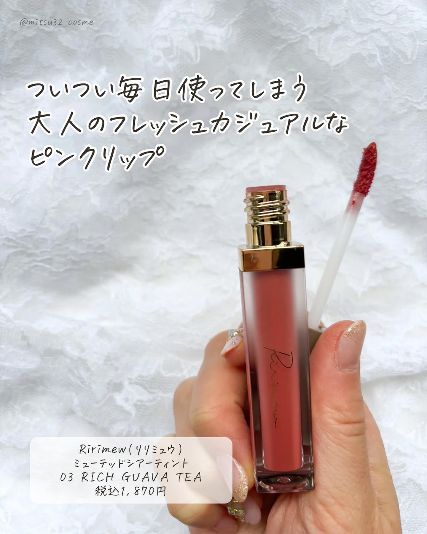 - <01 パピーレッド> 水、ダイマージリノール酸ダイマージリノレイル、ジフェニルジメチコン、ジフェニルシロキシフェニルトリメチコン、オクチルドデカノール、トリイソステアリン酸ポリグリセリルー2、ラウロイルグルタミン酸ジ(フィトステリル/オクチルドデシル)、ダイマージリノール酸(フィトステリル/イソステアリル/セチル/ステアリル/ベヘニル)、BG、水添ポリイソブテン、グリセリン、セテスー10、エタノール、セチルPEG/PPGー10/1ジメチコン、(アクリル酸ヒドロキシエチル/アクリロイルジメチルタウリンNa)コポリマー、イソヘキサデカン、フェノキシエタノール、メチルパラベン、ポリソルベート60、トコフェロール、エチルパラベン、デヒドロ酢酸Na、リン酸2Na、リン酸Na、シメチコン、シリカ、ハチミツ、スクワラン、ステアリン酸ソルビタン、ステアリン酸グリセリル、オレイン酸ポリグリセリルー10、セルロースガム、ヒアルロン酸Na、ローズマリー葉エキス、(+/ー)酸化鉄、酸化チタン、赤227、黄4、赤226、ポリアスパラギン酸Na、PVP、アクリレーツコポリマーアンモニウム、キサンタンガム、水酸化Al、EDTAー2Na <02 ピンクフォンデュ> 水、ダイマージリノール酸ダイマージリノレイル、ジフェニルジメチコン、ジフェニルシロキシフェニルトリメチコン、オクチルドデカノール、トリイソステアリン酸ポリグリセリルー2、ラウロイルグルタミン酸ジ(フィトステリル/オクチルドデシル)、ダイマージリノール酸(フィトステリル/イソステアリル/セチル/ステアリル/ベヘニル)、BG、水添ポリイソブテン、グリセリン、セテスー10、エタノール、セチルPEG/PPGー10/1ジメチコン、(アクリル酸ヒドロキシエチル/アクリロイルジメチルタウリンNa)コポリマー、イソヘキサデカン、フェノキシエタノール、メチルパラベン、ポリソルベート60、トコフェロール、エチルパラベン、デヒドロ酢酸Na、リン酸2Na、リン酸Na、シメチコン、シリカ、ハチミツ、スクワラン、ステアリン酸ソルビタン、ステアリン酸グリセリル、オレイン酸ポリグリセリルー10、セルロースガム、ヒアルロン酸Na、ローズマリー葉エキス、(+/ー)酸化鉄、酸化チタン、赤227、黄4、赤226、ポリアスパラギン酸Na、PVP、アクリレーツコポリマーアンモニウム、キサンタンガム、水酸化Al、EDTAー2Na <03 リッチグァバティー> 水、ダイマージリノール酸ダイマージリノレイル、ジフェニルジメチコン、グリセリン、ジフェニルシロキシフェニルトリメチコン、オクチルドデカノール、BG、トリイソステアリン酸ポリグリセリル-2、ダイマージリノール酸(フィトステリル/イソステアリル/セチル/ステアリル/ベヘニル)、セチルPEG/PPG-10/1ジメチコン、セテス-10、水添ポリイソブテン、ステアリン酸グリセリル(SE)、フェノキシエタノール、カルボマー、水酸化K、ステアロイルグルタミン酸Na、メチルパラベン、(アクリレーツ/アクリル酸アルキル(C10-30))クロスポリマー、トコフェロール、ポリソルベート80、ハチミツ、ヒアルロン酸Na、ローズマリー葉エキス、酸化チタン、酸化鉄、赤227、黄4、黄5、シリカ、水酸化Al、赤104(1)、青1 <04 オレンジアールグレイ> 水、ダイマージリノール酸ダイマージリノレイル、ジフェニルジメチコン、グリセリン、ジフェニルシロキシフェニルトリメチコン、オクチルドデカノール、BG、トリイソステアリン酸ポリグリセリル-2、ダイマージリノール酸(フィトステリル/イソステアリル/セチル/ステアリル/ベヘニル)、セチルPEG/PPG-10/1ジメチコン、セテス-10、水添ポリイソブテン、ステアリン酸グリセリル(SE)、フェノキシエタノール、カルボマー、水酸化K、ステアロイルグルタミン酸Na、メチルパラベン、(アクリレーツ/アクリル酸アルキル(C10-30))クロスポリマー、トコフェロール、ハチミツ、ヒアルロン酸Na、ローズマリー葉エキス、酸化鉄、黄4、赤227、黄5、シリカ <05 コンポートピンク> 水、ジフェニルジメチコン、ダイマージリノール酸ダイマージリノレイル、グリセリン、ジフェニルシロキシフェニルトリメチコン、オクチルドデカノール、BG、トリイソステアリン酸ポリグリセリル-2、ダイマージリノール酸(フィトステリル/イソステアリル/セチル/ステアリル/ベヘニル)、水添ポリイソブテン、セテス-10、セチルPEG/PPG-10/1ジメチコン、ステアリン酸グリセリル(SE)、フェノキシエタノール、カルボマー、水酸化K、ステアロイルグルタミン酸Na、(アクリレーツ/アクリル酸アルキル(C10-30))クロスポリマー、メチルパラベン、トコフェロール、ポリソルベート80、ハチミツ、ヒアルロン酸Na、ローズマリー葉エキス、(+/-)酸化チタン、酸化鉄、赤227、赤104(1)、黄4、黄5、シリカ、水酸化Al、青1 <06 ピンクマーガレット> 水、ジフェニルジメチコン、ダイマージリノール酸ダイマージリノレイル、グリセリン、ジフェニルシロキシフェニルトリメチコン、オクチルドデカノール、BG、トリイソステアリン酸ポリグリセリル-2、ダイマージリノール酸(フィトステリル/イソス