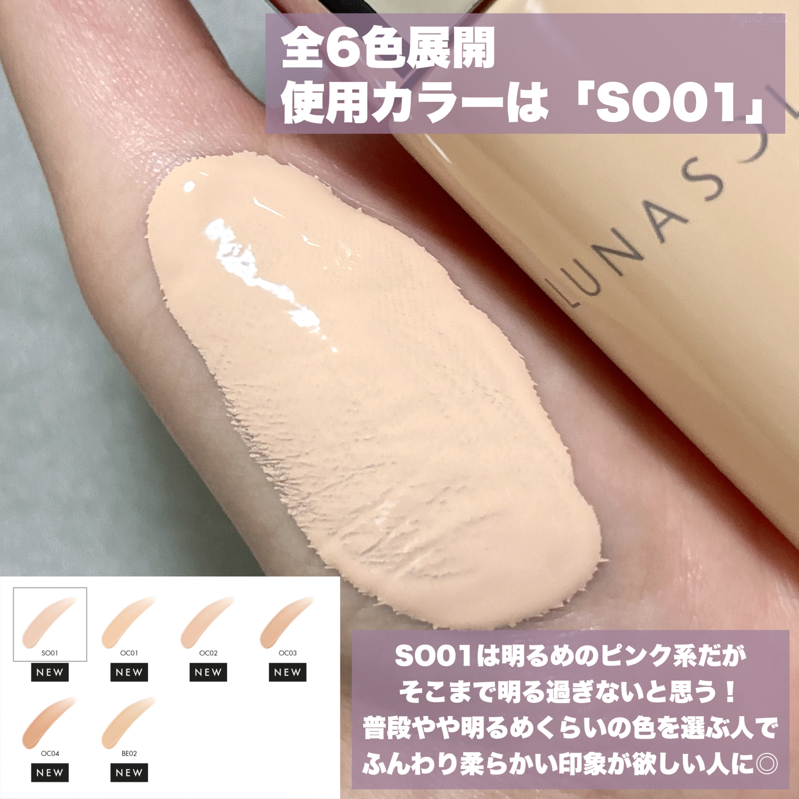 - <OC01> 水、ジメチコン、酸化チタン、メチルトリメチコン、メトキシケイヒ酸エチルヘキシル、ジフェニルシロキシフェニルトリメチコン、BG、DPG、トリメチルシロキシケイ酸、エタノール、シリカ、セチルPEG/PPG-10/1ジメチコン、エチルヘキサン酸セチル、ジステアルジモニウムヘクトライト、塩化Na、イソドデカン、酸化亜鉛、ポリシリコーン-9、窒化ホウ素、イソステアリン酸ソルビタン、ダイマージリノール酸(フィトステリル/イソステアリル/セチル/ステアリル/ベヘニル)、水酸化Al、ラウロイルグルタミン酸ジ(オクチルドデシル/フィトステリル/ベヘニル)、含水シリカ、ホホバ種子油、乳酸桿菌/豆乳発酵液、オランダガラシエキス、ヒアルロン酸Na、カニナバラ果実油、サッカロミセス溶解質エキス、ノイバラ果実エキス、フェノキシエタノール、(+/-)タルク、酸化鉄 <OC02> 水、ジメチコン、酸化チタン、メチルトリメチコン、メトキシケイヒ酸エチルヘキシル、ジフェニルシロキシフェニルトリメチコン、BG、DPG、トリメチルシロキシケイ酸、エタノール、シリカ、セチルPEG/PPG-10/1ジメチコン、エチルヘキサン酸セチル、ジステアルジモニウムヘクトライト、塩化Na、イソドデカン、酸化亜鉛、ポリシリコーン-9、窒化ホウ素、イソステアリン酸ソルビタン、ダイマージリノール酸(フィトステリル/イソステアリル/セチル/ステアリル/ベヘニル)、水酸化Al、ラウロイルグルタミン酸ジ(オクチルドデシル/フィトステリル/ベヘニル)、含水シリカ、ホホバ種子油、乳酸桿菌/豆乳発酵液、オランダガラシエキス、ヒアルロン酸Na、カニナバラ果実油、サッカロミセス溶解質エキス、ノイバラ果実エキス、フェノキシエタノール、(+/-)タルク、酸化鉄 <OC03> 水、ジメチコン、酸化チタン、メチルトリメチコン、メトキシケイヒ酸エチルヘキシル、ジフェニルシロキシフェニルトリメチコン、BG、DPG、トリメチルシロキシケイ酸、エタノール、シリカ、セチルPEG/PPG-10/1ジメチコン、エチルヘキサン酸セチル、ジステアルジモニウムヘクトライト、塩化Na、イソドデカン、酸化亜鉛、ポリシリコーン-9、窒化ホウ素、イソステアリン酸ソルビタン、ダイマージリノール酸(フィトステリル/イソステアリル/セチル/ステアリル/ベヘニル)、水酸化Al、ラウロイルグルタミン酸ジ(オクチルドデシル/フィトステリル/ベヘニル)、含水シリカ、ホホバ種子油、乳酸桿菌/豆乳発酵液、オランダガラシエキス、ヒアルロン酸Na、カニナバラ果実油、サッカロミセス溶解質エキス、ノイバラ果実エキス、フェノキシエタノール、(+/-)タルク、酸化鉄 <OC04> 水、ジメチコン、酸化チタン、メチルトリメチコン、メトキシケイヒ酸エチルヘキシル、ジフェニルシロキシフェニルトリメチコン、BG、DPG、トリメチルシロキシケイ酸、エタノール、シリカ、セチルPEG/PPG-10/1ジメチコン、エチルヘキサン酸セチル、ジステアルジモニウムヘクトライト、塩化Na、イソドデカン、酸化亜鉛、ポリシリコーン-9、窒化ホウ素、イソステアリン酸ソルビタン、ダイマージリノール酸(フィトステリル/イソステアリル/セチル/ステアリル/ベヘニル)、水酸化Al、ラウロイルグルタミン酸ジ(オクチルドデシル/フィトステリル/ベヘニル)、含水シリカ、ホホバ種子油、乳酸桿菌/豆乳発酵液、オランダガラシエキス、ヒアルロン酸Na、カニナバラ果実油、サッカロミセス溶解質エキス、ノイバラ果実エキス、フェノキシエタノール、(+/-)タルク、酸化鉄 <SO01> 水、ジメチコン、酸化チタン、メチルトリメチコン、メトキシケイヒ酸エチルヘキシル、ジフェニルシロキシフェニルトリメチコン、BG、DPG、トリメチルシロキシケイ酸、エタノール、シリカ、セチルPEG/PPG-10/1ジメチコン、エチルヘキサン酸セチル、ジステアルジモニウムヘクトライト、塩化Na、イソドデカン、酸化亜鉛、ポリシリコーン-9、窒化ホウ素、イソステアリン酸ソルビタン、ダイマージリノール酸(フィトステリル/イソステアリル/セチル/ステアリル/ベヘニル)、水酸化Al、ラウロイルグルタミン酸ジ(オクチルドデシル/フィトステリル/ベヘニル)、含水シリカ、ホホバ種子油、乳酸桿菌/豆乳発酵液、オランダガラシエキス、ヒアルロン酸Na、カニナバラ果実油、サッカロミセス溶解質エキス、ノイバラ果実エキス、フェノキシエタノール、(+/-)タルク、酸化鉄