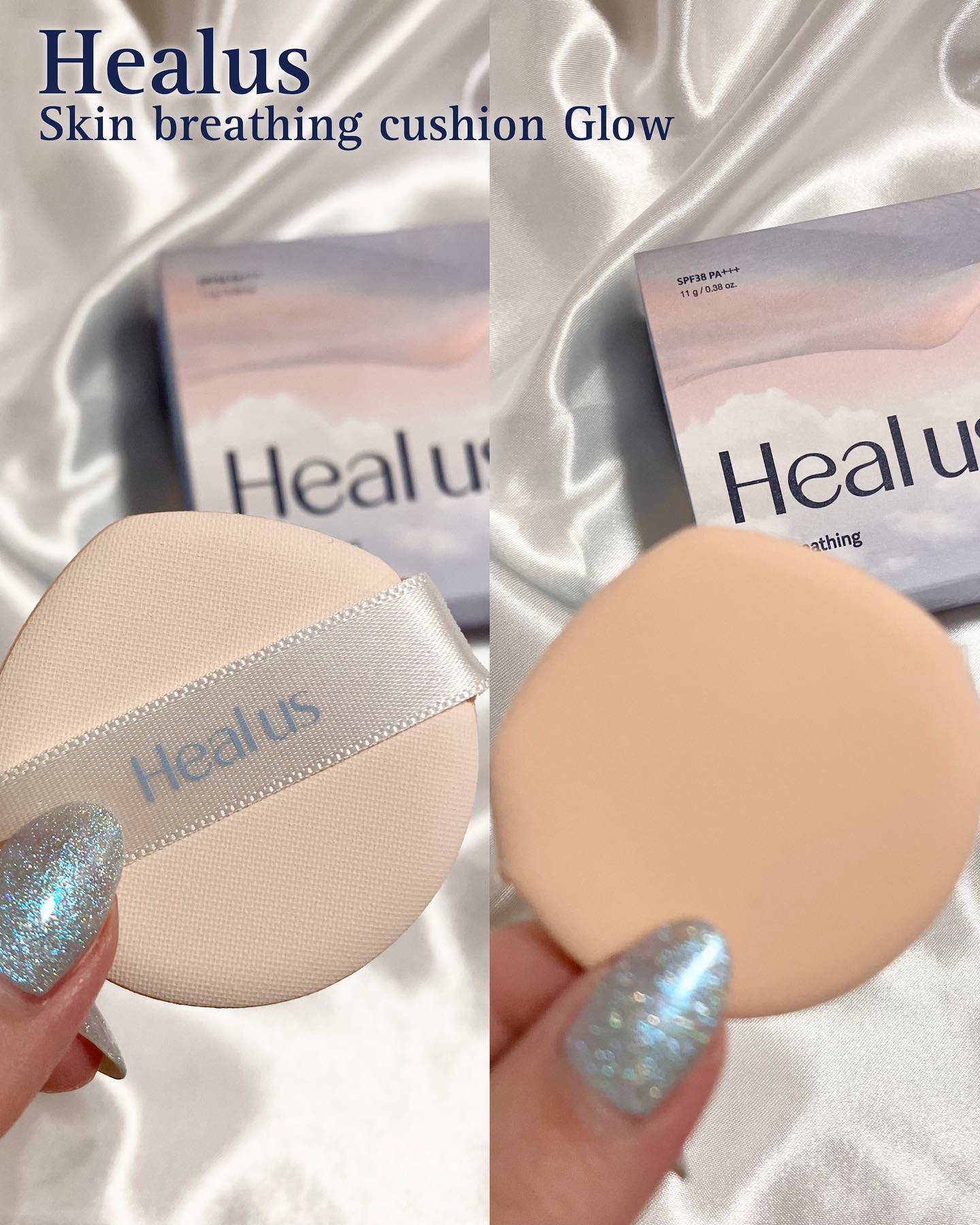ホーリーバジルという独自成分を使っています オメガ6セラミド等スキンケア成分70%使っているので、しっとり潤う感じの水分glow スポンジも収納できて持ち運びやすいクッションファンデ❣️