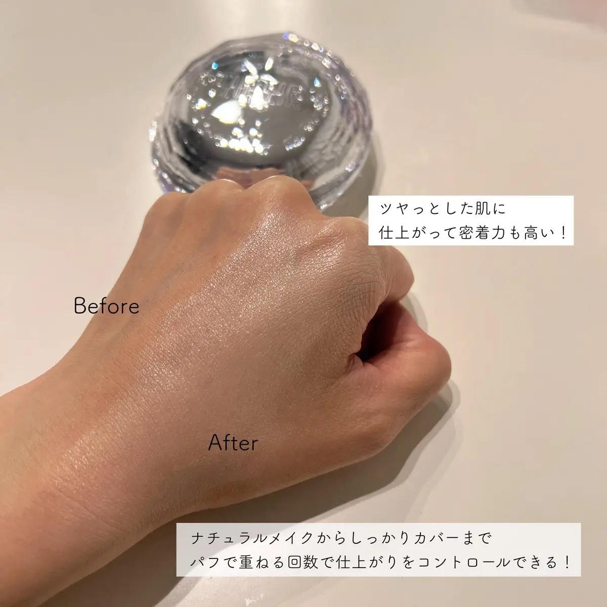 ツヤ肌に見せたい方には超おすすめだしパウダーとの相性もいいから脂性肌の人もパウダーと重ねると仕上がりはサラサラに🥺✨ 肌にのせた感覚はとても軽くて薄づきで 素肌感に近い仕上がりになりました! コンシーラーでアラを隠した後に このメッシュクッションで仕上げると ツヤっとした素肌感あるお肌に仕上げることができます!