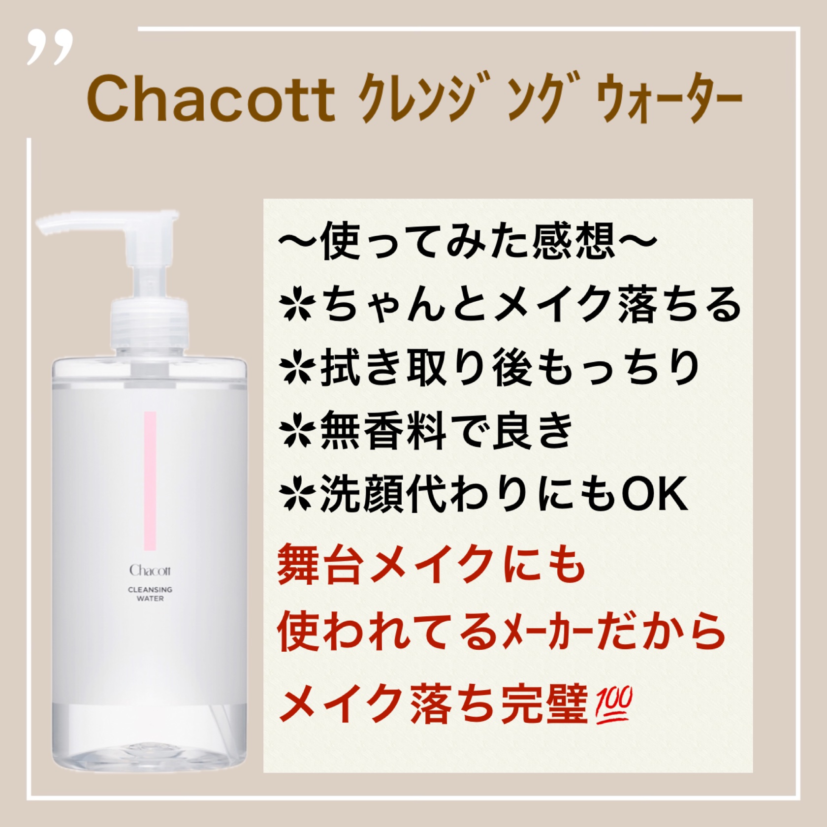 【リピしまくり“Chacott“クレンジングウォーター】Chacottクレンジングウォーター500mlもうね、大好き♡Chacottってパウダーとか下地が人気なイメージですが、このクレンジングウォーターもほんまに優勝してます👏🏻リアルなガチ愛...