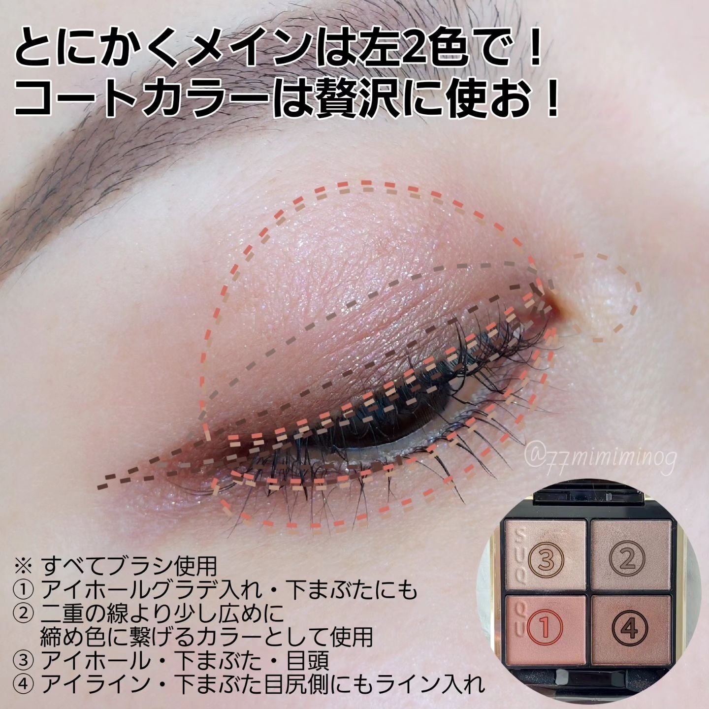 ベースに仕込むことで、パレットのカラーたちを引き立ててくれて発色がきれいに出る…!感動♡ 私の瞼ではピンクみが強めに出るんだけど、そのおかげでコートカラーのラメと締め色が映えて美しい🥹🩷 これ、136のパレットにも仕込んでみたい!!