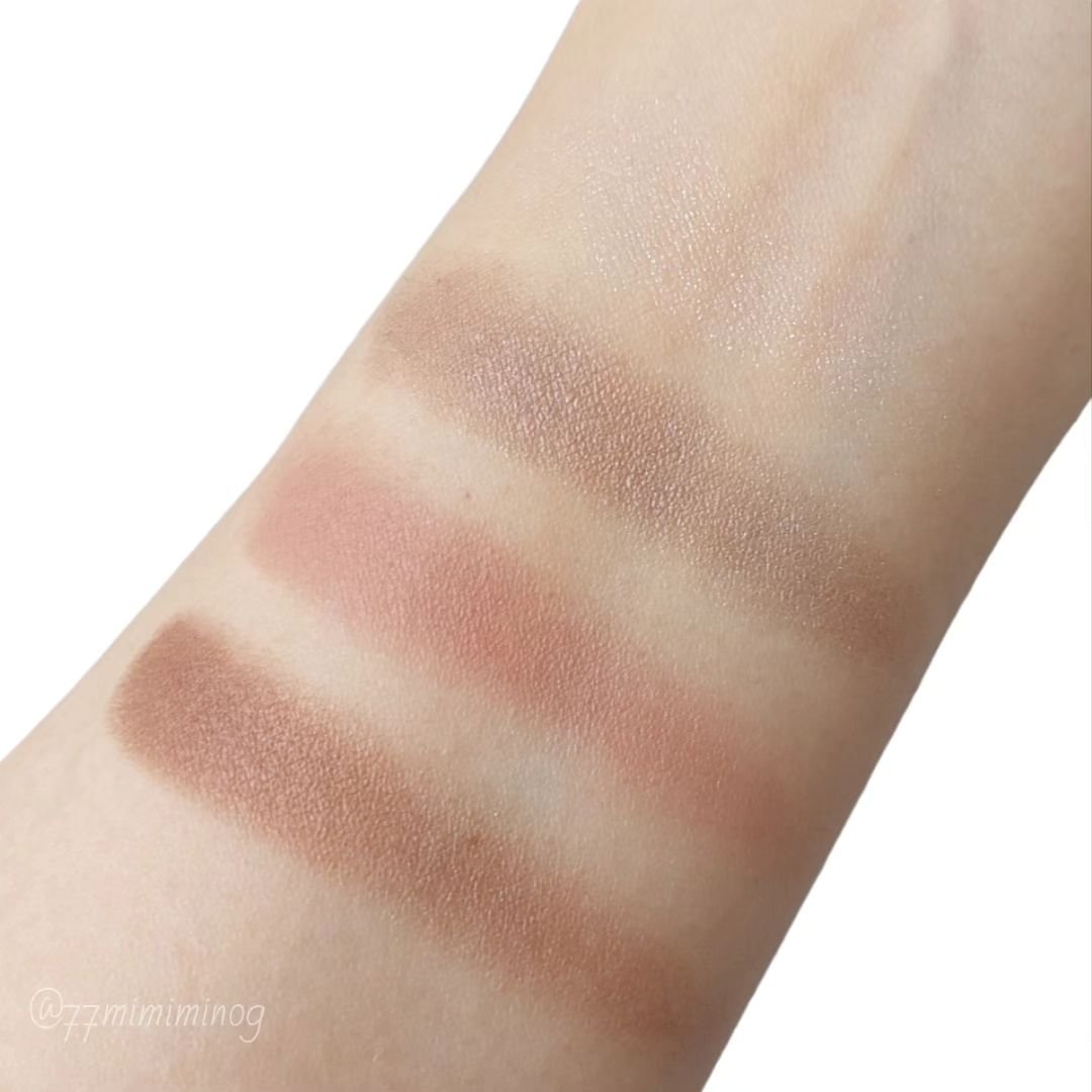 RMKのアイシャドウはこれがデビュー。こんなんブルベホイホイじゃん…。かわいすぎて即予約電話したわ🫠🩷 青みピンクに透明感爆発パープルにキラキララメ。締め色はグレージュっぽいブラウン。ブルベ大歓喜。 発色は調整しやすい。ピンクも見た目はビビッドだけど、ふんわり色づくので、好みの濃さにできるよ。