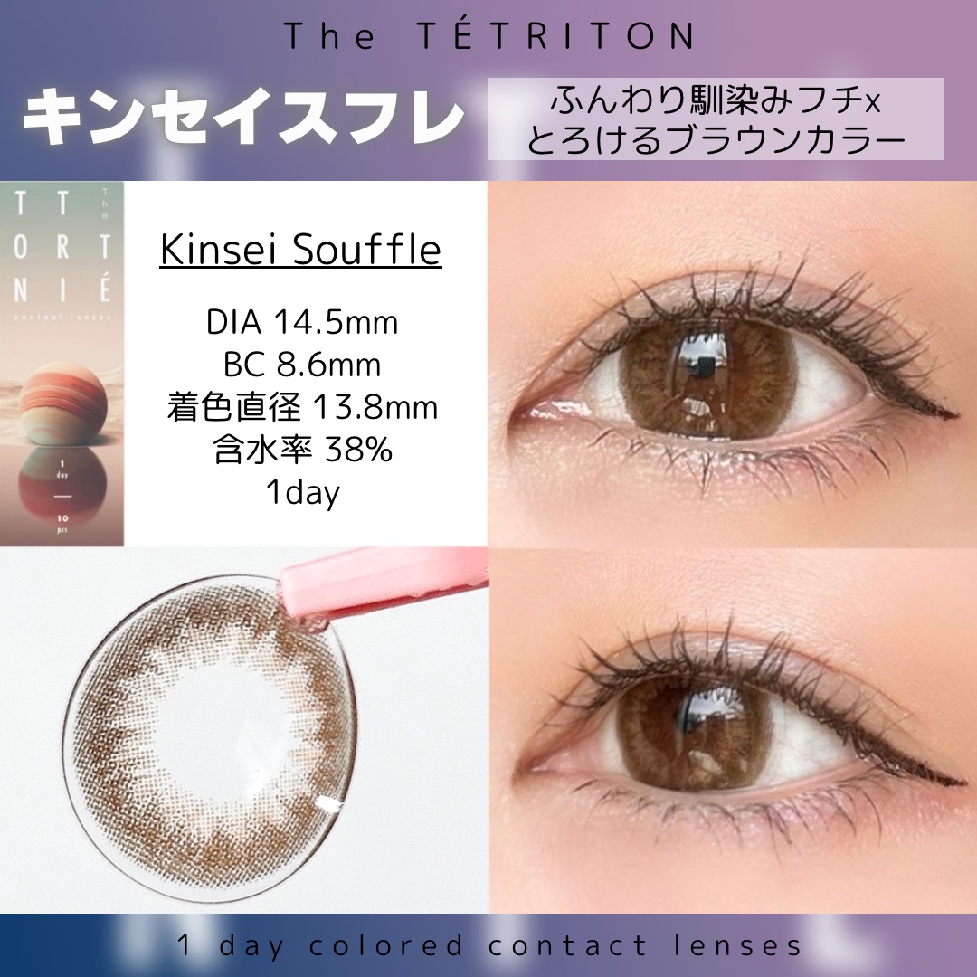 唯一無二の可愛さが詰まったレンズで カラー名やパケも宇宙っぽくて可愛い! 個性派で盛れるカラコンを探してる方におすすめです🐰 TETRITON DIA 14.5mm 着色直径 13.8mm BC 8.6mm 含水率 38%