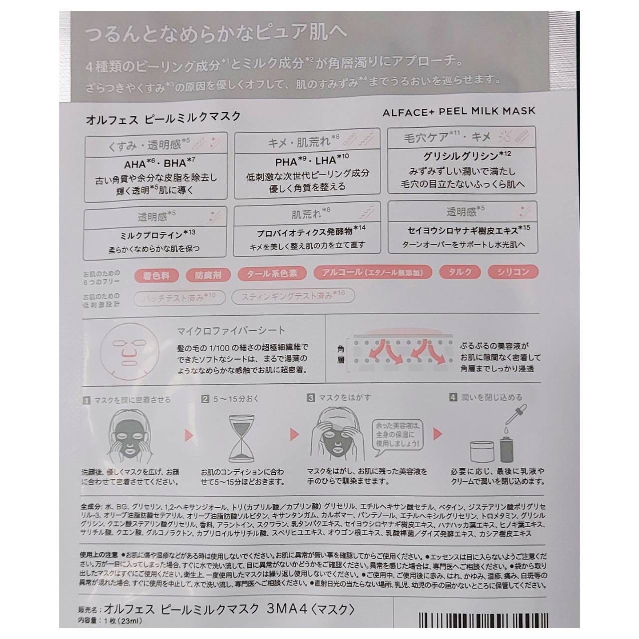 商品詳細情報ALFACE+ ピールミルクマスク