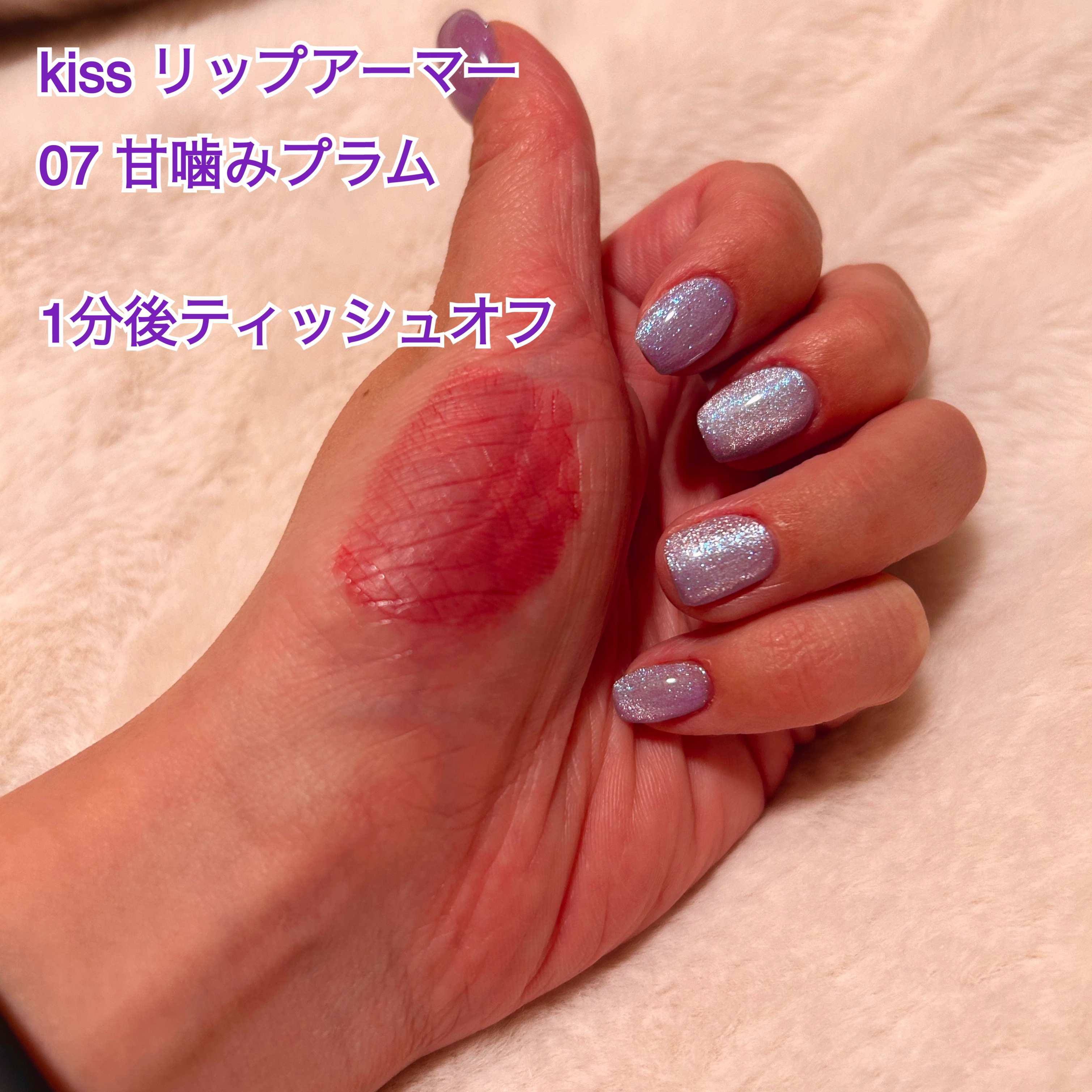 クールなモーヴピンク KiSSのリップアーマー 11 強敵フローズンモーヴを購入しました。 青みよりの鮮やかなピンクで青みと鮮やかさが得意なブルベの方におすすめです。 ティント処方ですので色持ちが良く、発色も良いです。