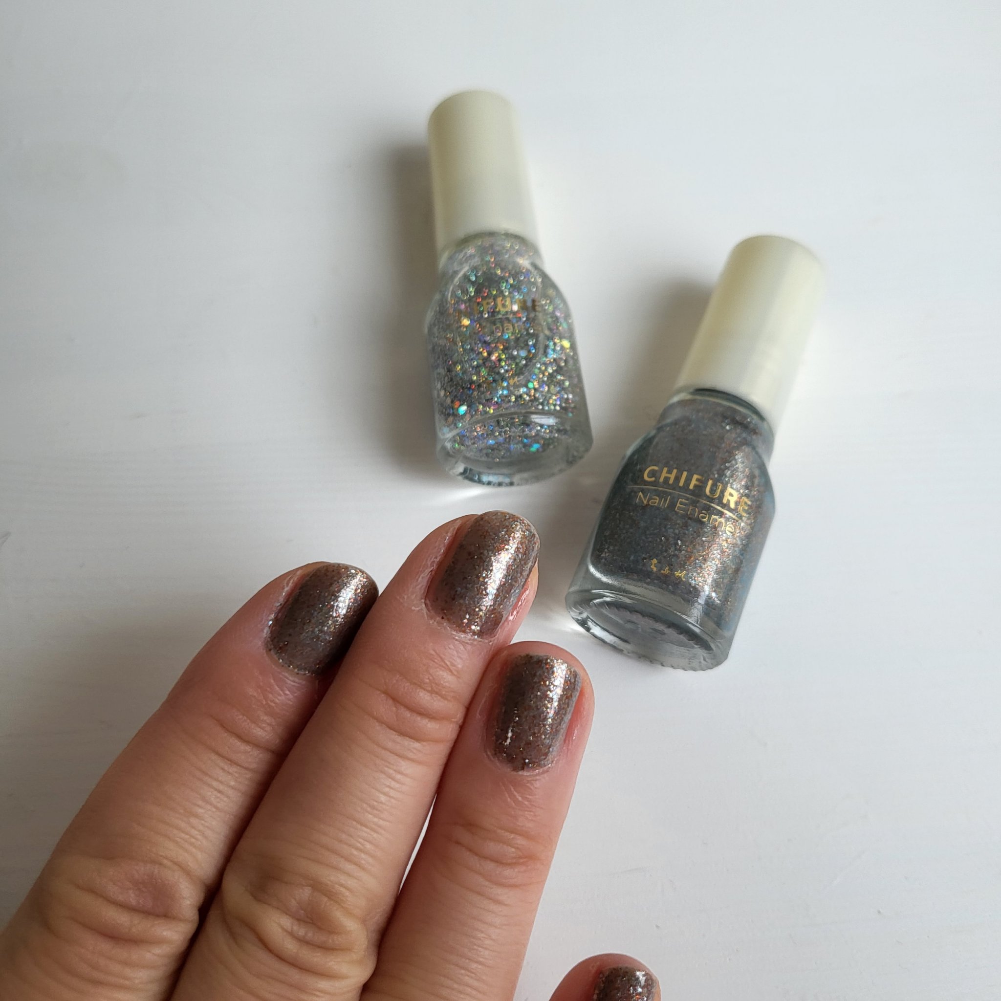 - <002 透明ラメ> 着色成分 (PET/ポリメタクリル酸メチル)ラミネート 適量 〃 ホウケイ酸(Ca/Al) 適量 〃 酸化チタン 適量 〃 グンジョウ 適量 〃 黄4 適量 〃 赤202 適量 〃 酸化鉄 適量 〃 コンジョウ 適量 〃 酸化スズ 適量 〃 紫201 適量 皮膜形成成分 ニトロセルロース 14.09% 〃 (無水フタル酸/無水トリメリト酸/グリコールズ)コポリマー 5.75% 〃 (アジピン酸/ネオペンチルグリコール/無水トリメリト酸)コポリマー 適量 保湿成分 パンテノール 適量 油性エモリエント成分 ジ安息香酸DPG 適量 可塑剤 クエン酸アセチルトリブチル 7.36% 分散剤 シリカ 2.46% 表面処理剤 水酸化Al 適量 〃 トリエトキシカプリリルシラン 適量 〃 メチコン 適量 増粘剤 ステアラルコニウムベントナイト 適量 溶剤 酢酸エチル 12.32% 〃 イソプロパノール 6.04% 〃 ブタノール 1.71% 基剤 酢酸ブチル 全量を100%とする <003 シルバー系ラメ> 着色成分 PET 適量 〃 (PET/ポリメタクリル酸メチル)ラミネート 適量 〃 ポリウレタン-11 適量 〃 Al 適量 〃 酸化チタン 適量 〃 黄4 適量 〃 赤202 適量 〃 酸化鉄 適量 〃 コンジョウ 適量 〃 紫201 適量 皮膜形成成分 ニトロセルロース 13.33% 〃 (無水フタル酸/無水トリメリト酸/グリコールズ)コポリマー 5.44% 〃 (アジピン酸/ネオペンチルグリコール/無水トリメリト酸)コポリマー 適量 保湿成分 パンテノール 適量 油性エモリエント成分 ジ安息香酸DPG 適量 可塑剤 クエン酸アセチルトリブチル 6.97% 分散剤 安息香酸スクロース 4.00% 〃 シリカ 2.33% 退色防止剤 メトキシケイヒ酸エチルヘキシル 1.00% 成分の酸化防止剤 BHT 適量 増粘剤 ステアラルコニウムベントナイト 適量 表面処理剤 水酸化Al 適量 〃 メチコン 適量 〃 トリエトキシカプリリルシラン 適量 溶剤 酢酸エチル 11.66% 〃 イソプロパノール 5.71% 〃 ブタノール 1.61% 基剤 酢酸ブチル 全量を100%とする <004 ゴールド系ラメ> 着色成分 (PET/Al)ラミネート 適量 〃 PET 適量 〃 (PET/ポリメタクリル酸メチル)ラミネート 適量 〃 黄4 適量 〃 ポリウレタン-11 適量 〃 赤202 適量 〃 Al 適量 〃 酸化チタン 適量 〃 酸化鉄 適量 〃 コンジョウ 適量 〃 紫201 適量 皮膜形成成分 ニトロセルロース 13.53% 〃 (無水フタル酸/無水トリメリト酸/グリコールズ)コポリマー 5.52% 〃 (アジピン酸/ネオペンチルグリコール/無水トリメリト酸)コポリマー 適量 保湿成分 パンテノール 適量 油性エモリエント成分 ジ安息香酸DPG 適量 可塑剤 クエン酸アセチルトリブチル 7.07% 分散剤 安息香酸スクロース 4.00% 〃 シリカ 2.37% 退色防止剤 メトキシケイヒ酸エチルヘキシル 1.00% 成分の酸化防止剤 BHT 適量 増粘剤 ステアラルコニウムベントナイト 適量 表面処理剤 水酸化Al 適量 〃 メチコン 適量 〃 トリエトキシカプリリルシラン 適量 溶剤 酢酸エチル 11.84% 〃 イソプロパノール 5.80% 〃 ブタノール 1.64% 基剤 酢酸ブチル 全量を100%とする <007 ホワイト系> 着色成分 酸化チタン 適量 〃 黄4 適量 〃 赤202 適量 〃 酸化鉄 適量 〃 赤201 適量 〃 硫酸Ba 適量 〃 コンジョウ 適量 皮膜形成成分 ニトロセルロース 12.92% 〃 (無水フタル酸/無水トリメリト酸/グリコールズ)コポリマー 6.99% 〃 (アジピン酸/フマル酸/フタル酸/トリシクロデカンジメタノール)コポリマー 1.16% 〃 アクリル酸アルキルコポリマー 適量 保湿成分 パンテノール 適量 可塑剤 クエン酸アセチルトリブチル 7.80% 〃 クエン酸 0.02% 増粘剤 ステアラルコニウムヘクトライト 1.34% 粘度調整剤 ジメチコン 適量 〃 ジ(C12-15)パレス-2リン酸 適量 溶剤 酢酸エチル 20.13% 〃 イソプロパノール 5.61% 基剤 酢酸ブチル 全量を100%とする <014 透明ラメ> 着色成分 (PET/ポリメタクリル酸メチル)ラミネート 適量 〃 酸化チタン 適量 〃 黄4 適量 〃 赤202 適量 〃 酸化鉄 適量 〃 赤201 適量 〃 硫酸Ba 適量 〃 コンジョウ 適量 〃 紫201 適量 皮膜形成成分 ニトロセルロース 13.98% 〃 (無水フタル酸/無水トリメリト酸/グリコールズ)コポリマー 5.71% 〃 アクリル酸アルキルコポリマー 適量 保湿成分 パンテノール 適量 可塑剤 クエン酸アセチルトリブチル 7.30% 分散剤 シリカ 2.44% 〃 安息香酸スクロース 2.00% 増粘剤 ステアラルコニウムヘクトライト 適量 溶剤 酢酸エチル 12.22% 〃 イソプロパノール 5.99% 〃 ブタノール 1.69% 基剤 酢酸ブチル 全量を100%とする <015 透明ラメ> 着色成分 (PET/ポリメタクリル酸メチル)ラミネート 適量 〃 酸化チタン 適量 〃 黄4 適量 〃 赤202 適量 〃 酸化鉄 適量 〃 赤201 適量 〃 硫酸Ba 適量 〃 コンジョウ 適量 〃 紫201 適量 皮膜形成成分 ニトロセルロース 13.98% 〃 (無水フタル酸/無水トリメリト酸/グリコールズ)コポリマー 5.71% 〃 アクリル酸アルキルコポリマー 適量 保湿成分 パンテノール 適量 可塑剤 クエン酸アセチルトリブチル 7.30% 分散剤 シリカ 2.44% 〃 安息香酸スクロース 2.00% 増粘剤 ステアラルコニウムヘクトライト 適量 溶剤 酢酸エチル 12.22% 〃 イソプロパノール 5.99% 〃 ブタノール 1.69% 基剤 酢酸ブチル 全量を100%とする <016 カラフルラメ> 酢酸ブチル, ニトロセルロース, 酢酸エチル, クエン酸ア