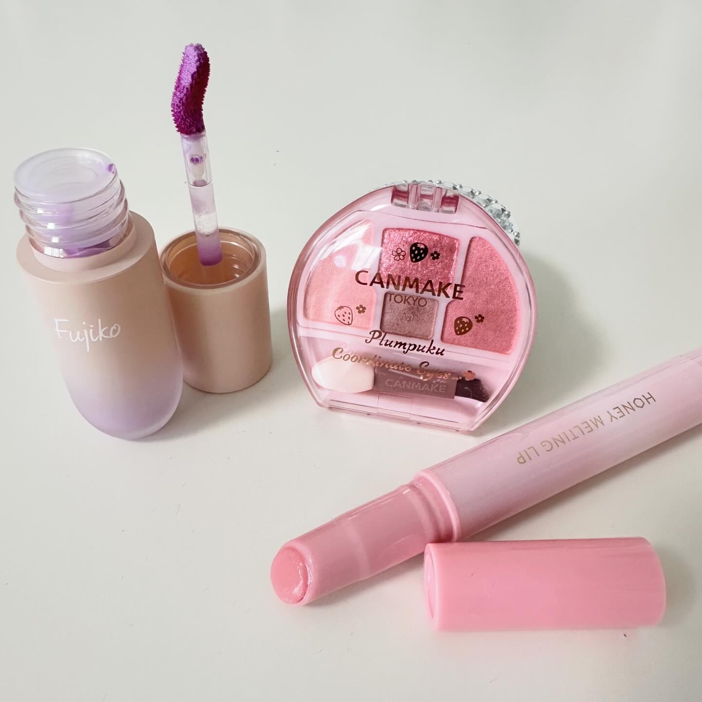 手に試した感じではベースのブルーは弱く、ラメ自体がブルーで可愛すぎる…! BAさんはパウダーアイシャドウのベースにもおすすめと教えてくれたので、 今日はこちらをベースにピンクブラウン系の アイシャドウを使ってメイクしてみたよ🫶🏻 肌に伸ばすとすぐにサラサラになるから ベタベタが残ったりしないし、 パウダーアイシャドウの上に重ねてもヨレない◎