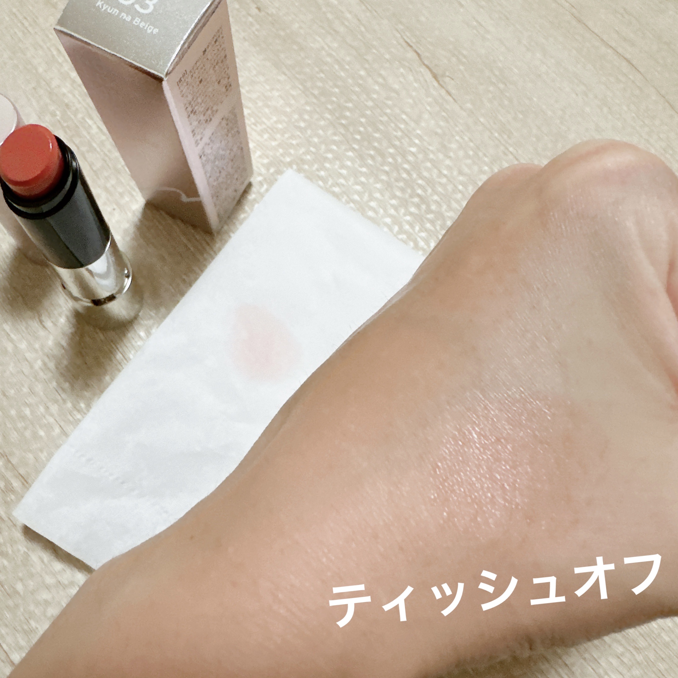 - <01 キュンなローズ> トリイソステアリン酸ポリグリセリル-2、ダイマージリノール酸ダイマージリノレイルビス(ベヘニル/イソステアリル/フィトステリル)、リンゴ酸ジイソステアリル、水添ポリイソブテン、合成ワックス、オクチルドデカノール、ジ安息香酸PG、パラフィン、イソステアリン酸ソルビタン、ジステアルジモニウムヘクトライト、マイクロクリスタリンワックス、酸化チタン、酸化鉄、酢酸トコフェロール、炭酸プロピレン、赤202、バオバブ種子油、オリーブ果実油、ホホバ種子油、アーモンド油、黄4、黄5 <02 キュンなピンク> トリイソステアリン酸ポリグリセリル-2、ダイマージリノール酸ダイマージリノレイルビス(ベヘニル/イソステアリル/フィトステリル)、リンゴ酸ジイソステアリル、水添ポリイソブテン、合成ワックス、オクチルドデカノール、ジ安息香酸PG、パラフィン、イソステアリン酸ソルビタン、ジステアルジモニウムヘクトライト、酸化チタン、マイクロクリスタリンワックス、酢酸トコフェロール、炭酸プロピレン、黄5、赤202、酸化鉄、バオバブ種子油、オリーブ果実油、ホホバ種子油、アーモンド油、黄4 <03 キュンなベージュ> トリイソステアリン酸ポリグリセリル-2、ダイマージリノール酸ダイマージリノレイルビス(ベヘニル/イソステアリル/フィトステリル)、リンゴ酸ジイソステアリル、水添ポリイソブテン、合成ワックス、オクチルドデカノール、ジ安息香酸PG、パラフィン、イソステアリン酸ソルビタン、ジステアルジモニウムヘクトライト、酸化チタン、マイクロクリスタリンワックス、酸化鉄、酢酸トコフェロール、炭酸プロピレン、赤104(1)、黄5、バオバブ種子油、オリーブ果実油、ホホバ種子油、アーモンド油、黄4