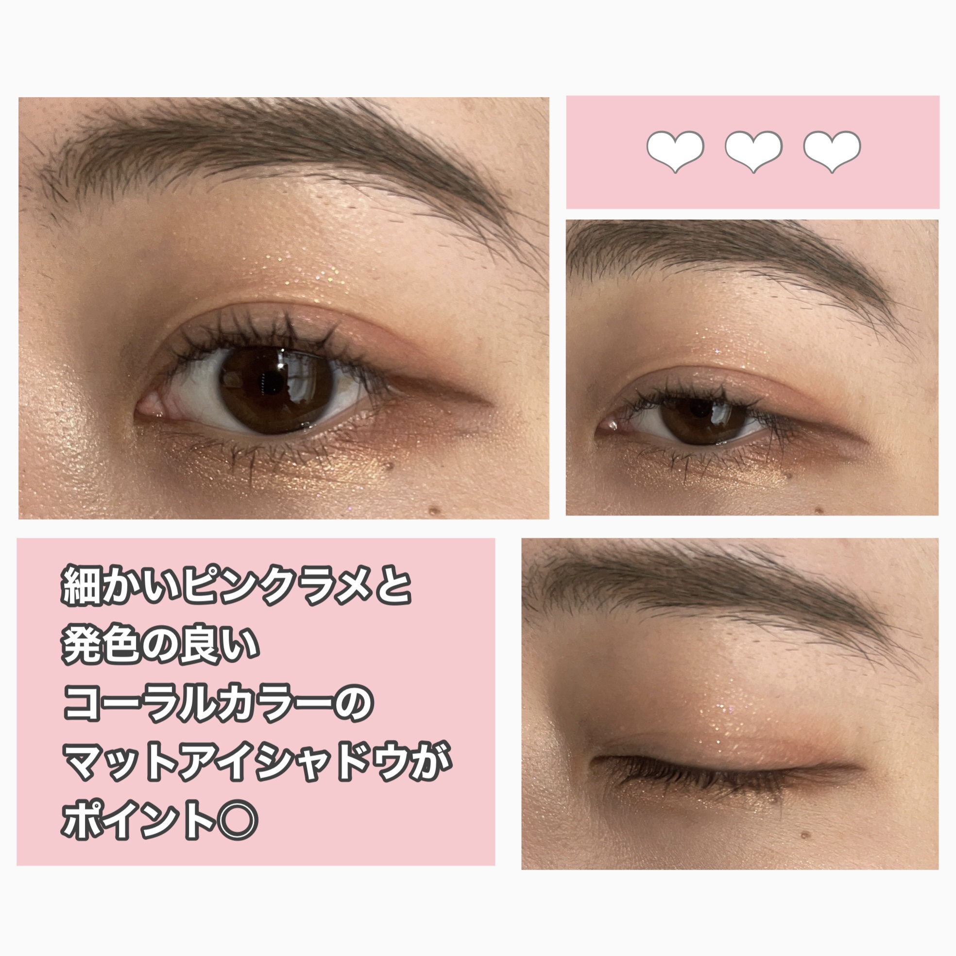 キャンメイクシルキースフレアイズ M04 キューピッドペタル を使ってメイクしたら、めちゃめちゃ彼氏の反応がよかったです! 初めてこの商品見たときは、ピンクが蛍光色っぽく見えて、絶対に買わないだろうなって思っていましたが、レビュー見て、色味可愛いってなって購入しました✨ まぶたの上できれいな色に発色してくれます!可愛い目元になります。 コーラルピンク好きさんにオススメ💘💐