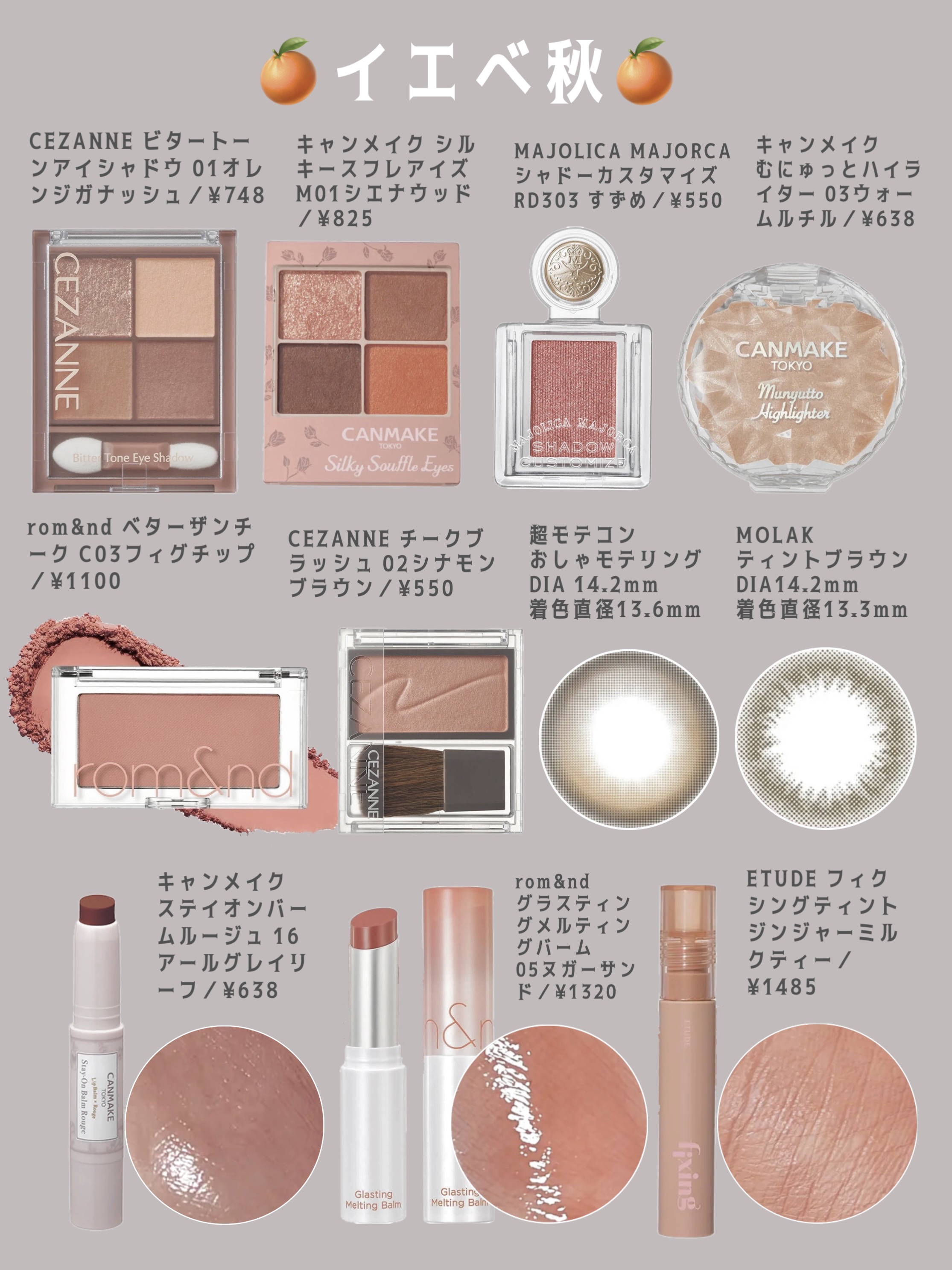 rom&nd ベターザンパレット 01PAMPAS GARDEN キャンメイク アイバッグコンシーラー 02ピンクベージュ CEZANNE ストレッチコンシーラー 30オレンジ系 これどんなに濃いクマも消える◎ やり方は画像を見てください🫶🏻 ラメを使わずに盛りたい時や、あざとく盛りたい時におすすめ!