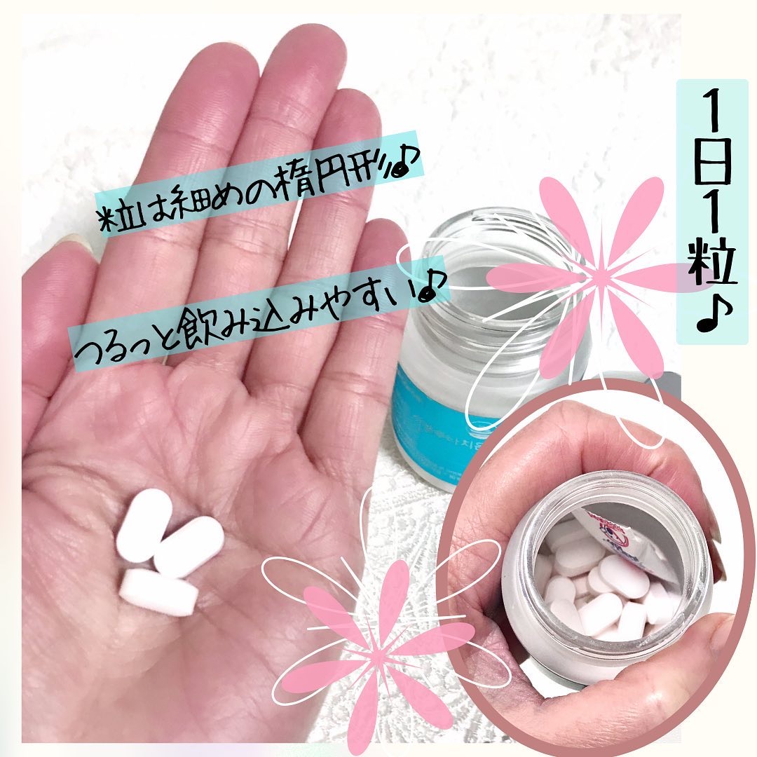 ころんと小さめサイズの錠剤。 香りや味は特に気にならなくいから飲みやすくて◎ サプリメントって続けることが大事だから、毎日続けやすくて飲みやすい物が良いですよね🥰 ボトルも可愛くてキッチンのカウンターに置いておいてもインテリアの邪魔をしないのも嬉しいポイント☝️