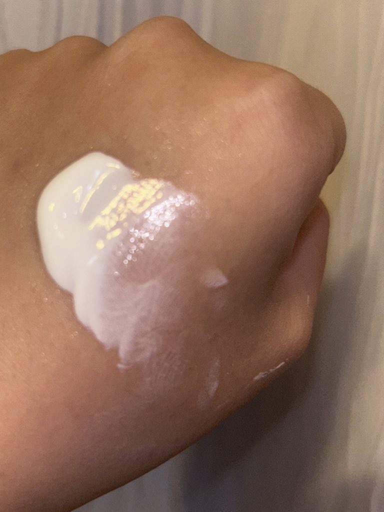 - <50g > 水、酸化チタン、BG、キサンタンガム、水酸化K、フェノキシエタノール、香料、水酸化Al、シア脂、トリエチルヘキサノイン、ステアリン酸、アルギニン、プロパンジオール、ポリヒドロキシステアリン酸、セタノール、デヒドロ酢酸Na、ステアリルアルコール、ポリソルベート60、(アクリル酸ヒドロキシエチル/アクリロイルジメチルタウリンNa)コポリマー、水添ポリイソブテン、ジカプリン酸ネオペンチルグリコール、パルミチン酸デキストリン、イソノナン酸イソノニル、イソノナン酸イソトリデシル、イソヘキサデカン、EDTA-2Na、トリ(カプリル酸/カプリン酸)グリセリル、ジイソステアリン酸ポリグリセリル-2、ポリソルベート80、ステアロイルグルタミン酸、ジステアリン酸ソルビタン、ベヘン酸グリセリル、ステアロイルメチルタウリンNa、トロメタミン、トリポリヒドロキシステアリン酸ジペンタエリスリチル、ジエチルヘキサン酸ネオペンチルグリコール、(アクリル酸Na/アクリロイルジメチルタウリンNa)コポリマー