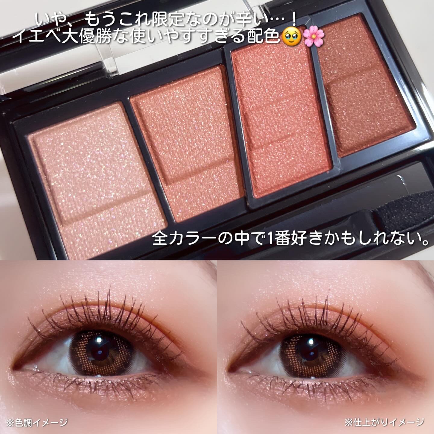 - カラーニュアンスシェードを目尻に入れるだけで目幅を大きく見せ※、抜け感のある明るい大きな目元に仕上るブラウンアイシャドウ。 ブラウン×カラーニュアンスの4色セット。※メイクアップ効果
