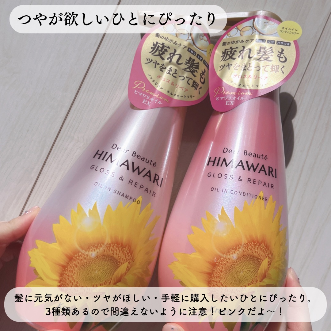 ツヤを失った疲れ髪も、毛先までツヤをまとってスルンと輝く髪に変身!🌸 髪の「ゆがみ」をケアして、髪の面を整えることで、まるで天使の輪ができたかのようなツヤ感を実現!✨ プレミアムヒマワリオイルEX。髪内部にうるおいを与え、外側のキューティクルをコートしてダメージを補修&保湿してくれます✨