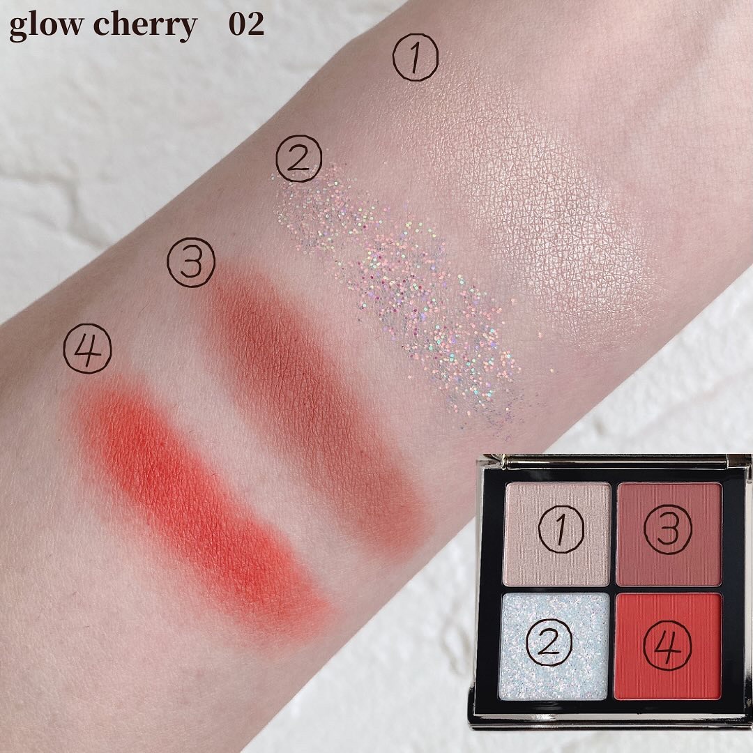 高発色だけどシアーで 粉質も柔らかく肌に密着してくれるアイシャドウ マットカラー2色、ハイライトカラー1色 グリッター1色、の4色パレット 個人的にやっぱり使いやすい04がお気に入り