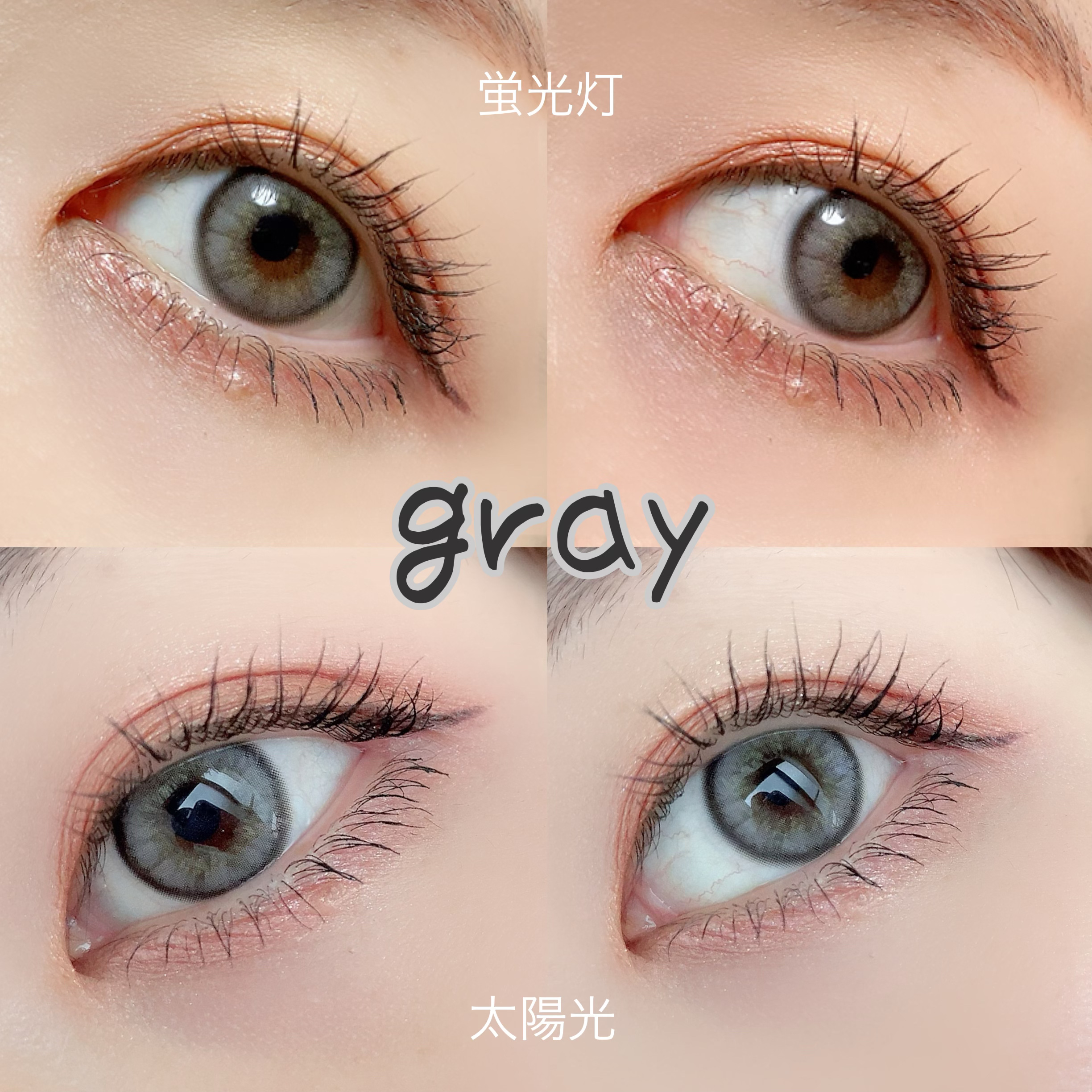 セイマイネームの愛らしい魅力を詰め込んだ BIG直径のレンズデザインがポイント💖 ちゅるんとしたアッシュ系のブラウンカラー 水彩画のように広がるベースと細フチがビー玉のように澄んで柔らかいまなざしを演出🫧 神秘的に青みがかった落ち着いたトーンの絶妙なグレーカラーが霧のようにじんわり広がってダブルラインのフチがくっきりした瞳を演出☁️