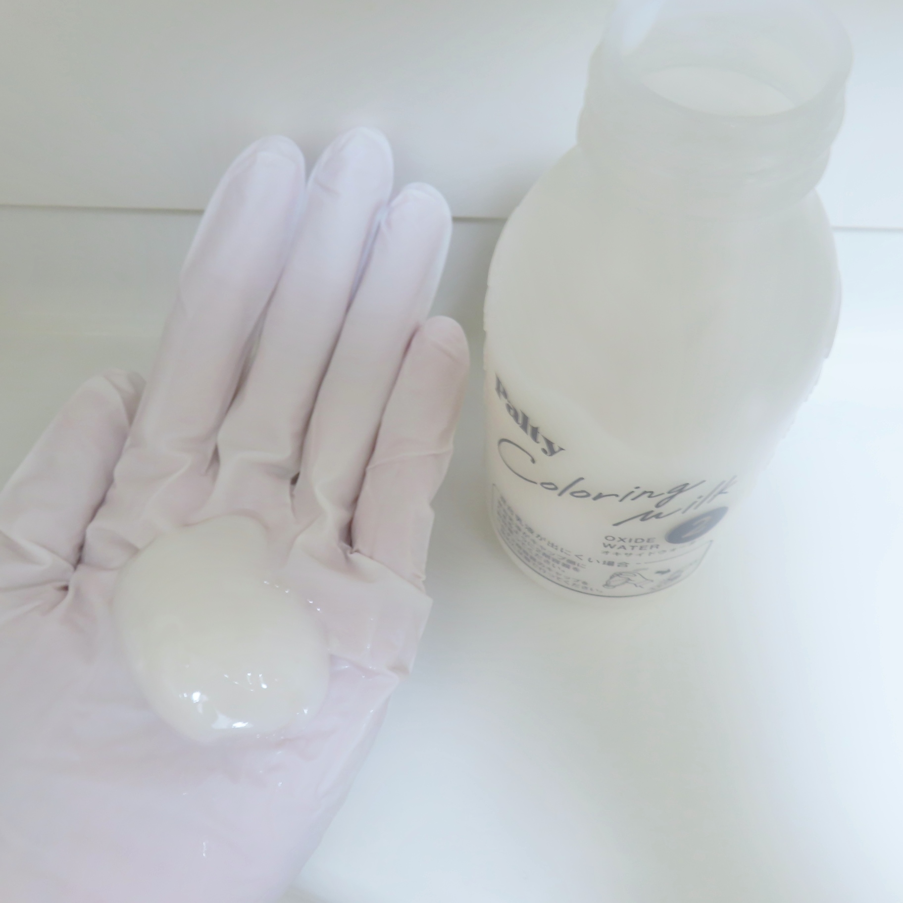 乳液タイプのカラーリングミルクで、ブラシを使わず手で塗れます。 手袋はピタッとしたタイプなので手首の部分を留めるための輪ゴムを用意しなくても大丈夫でした。 香りがきつくなくて良かったです