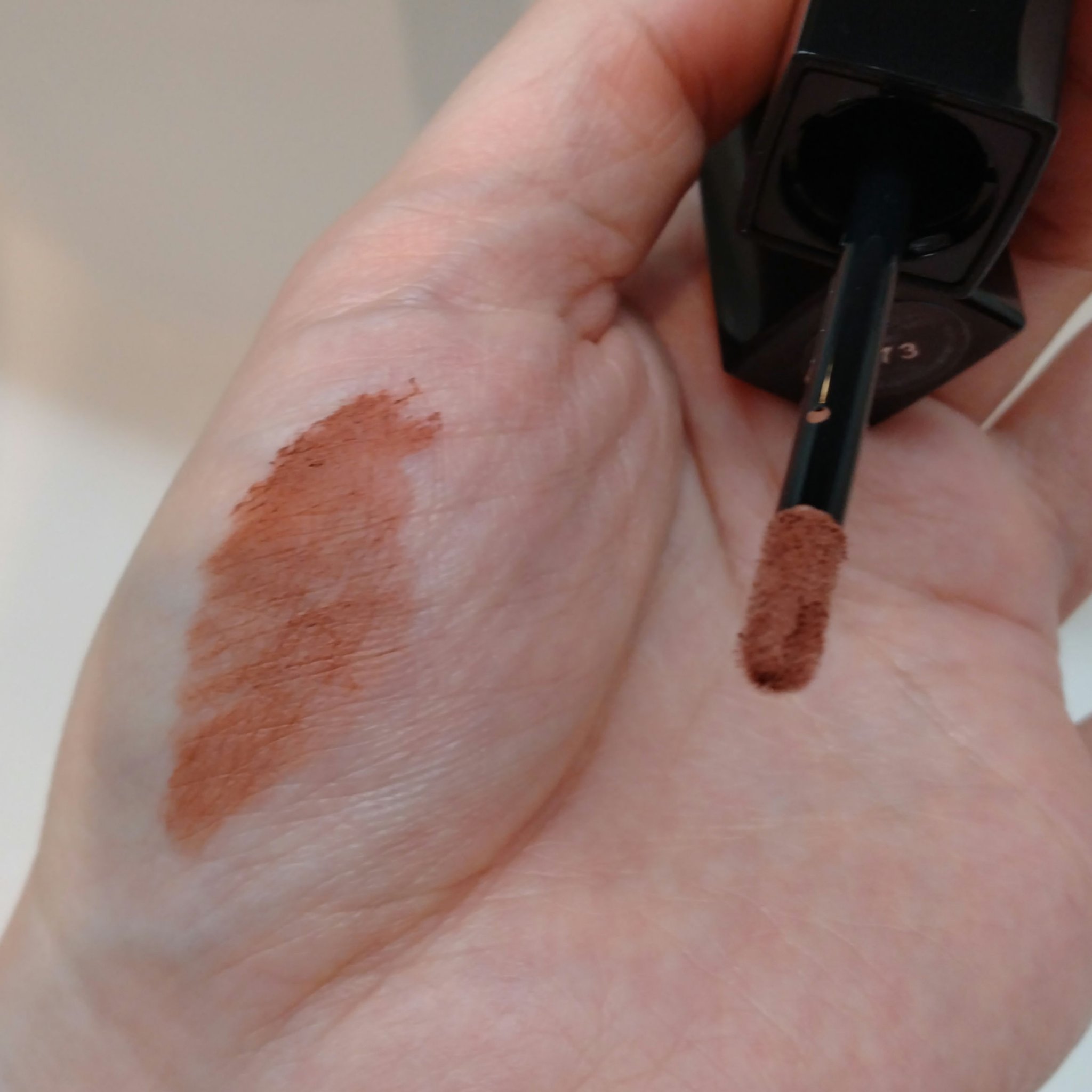 マットな透け感発色のリキッドタイプルージュです。 ぴたっと定着して落ちにくいのに荒れにくい。 知的なメロウブラウン…というのが恐らく日本でのカラー名だと思うのですが、キャップのシールには"I Conquer"とあります。 発色が良いですが、のびがかなり良いリキッドなので付ける量を調節しやすいです。 香りについては、好みは別れそうですが…私は大好きです。 ロレアルのリップはどれも美味しい香りなので許せます。
