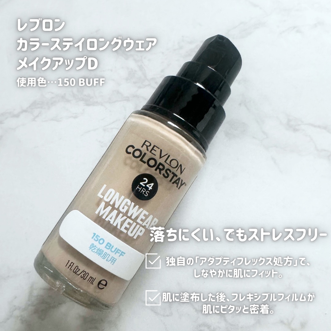 【REVLONカラーステイロングウェアメイクアップ150バフ】ナチュラルな仕上がりなのに崩れにくく、くすみにくいから夏メイクにぴったり!皮脂や汗でメイクがドロドロになりがちな人におすすめしたい、レブロンのカラーステイロングウェアメイクアップ♡...