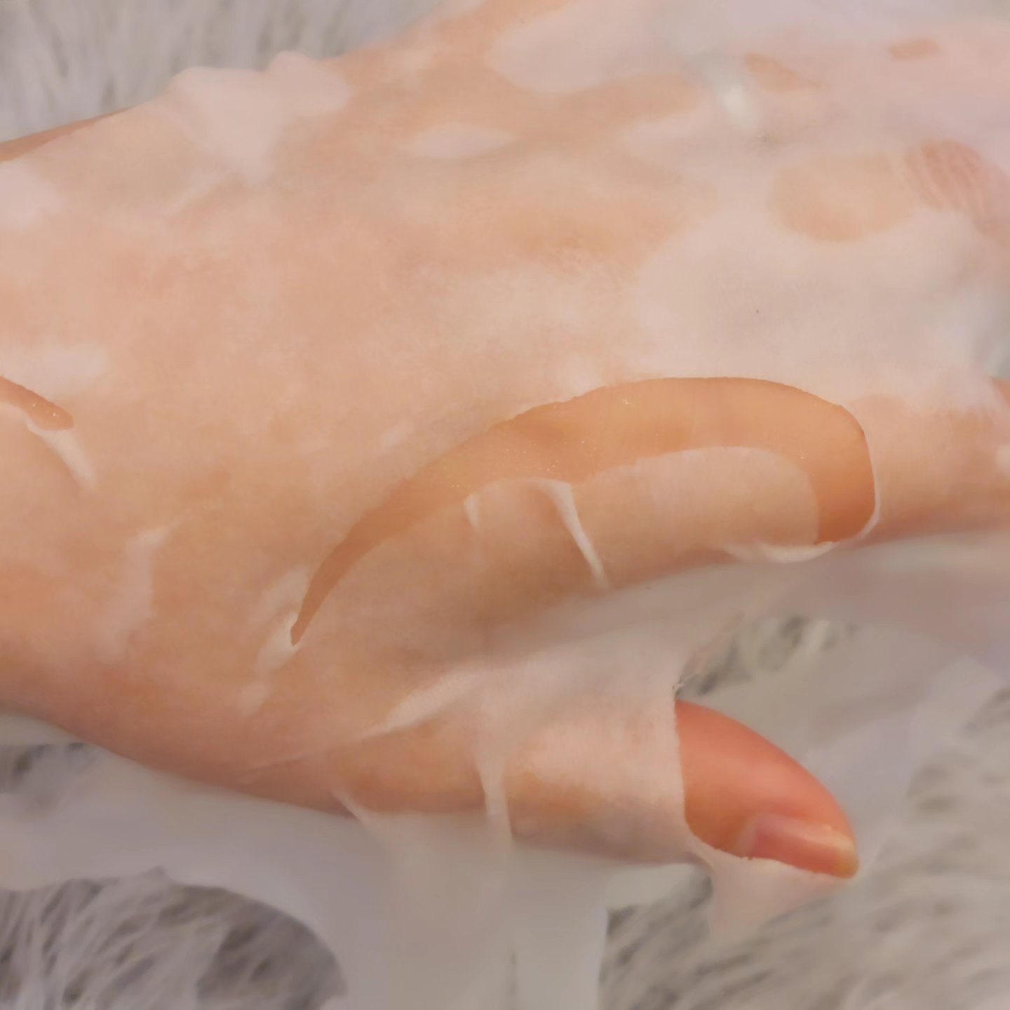 洗顔いらずのオールインワン処方♡ 朝の1分*1! コラーゲン*2*3*4VC*5ピールマスクでツルツル光る磨き肌! 朝に嬉しいビタミンC*5配合でツヤっと輝く磨かれたような肌に! ⭐美容液を含みやすい、ふんわり極柔フルフィットシート採用 朝、夜とも短時間でケアできるので便利✨ マスクは美容液をたっぷり含んでいて、柔らかくピタッと肌に密着し、しっとりするような使用感でべたつきも感じなかったです!