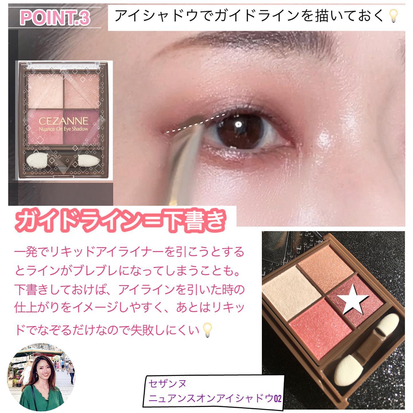 アイライナーの引き方5パターン【アイライナーの効果】⚫︎目の輪郭を際立たせる⚫︎目の形を変える⚫︎黒目を大きく見せる⚫︎目の左右差を整える⚫︎まつ毛を濃く見せる ❶丸目ライン目の形を丸く見せたいときは、目の中央に太めにラインを入れる。この位...